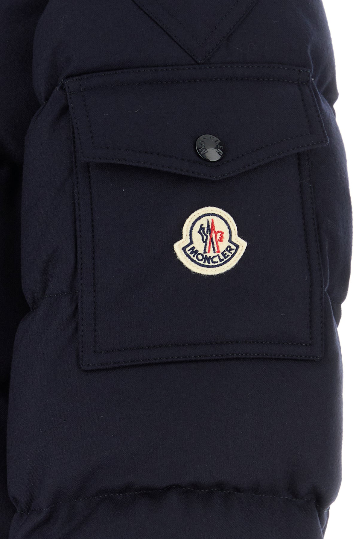 Down jacket realized in quilted pure virgin wool enriched by logoed patch on the sleeve.