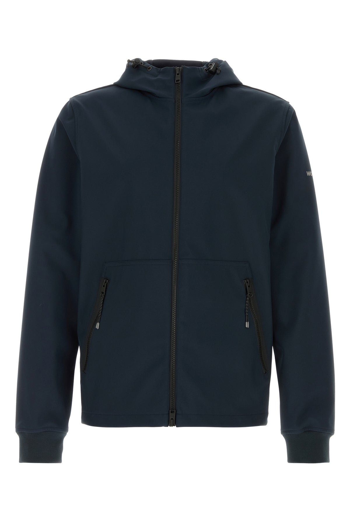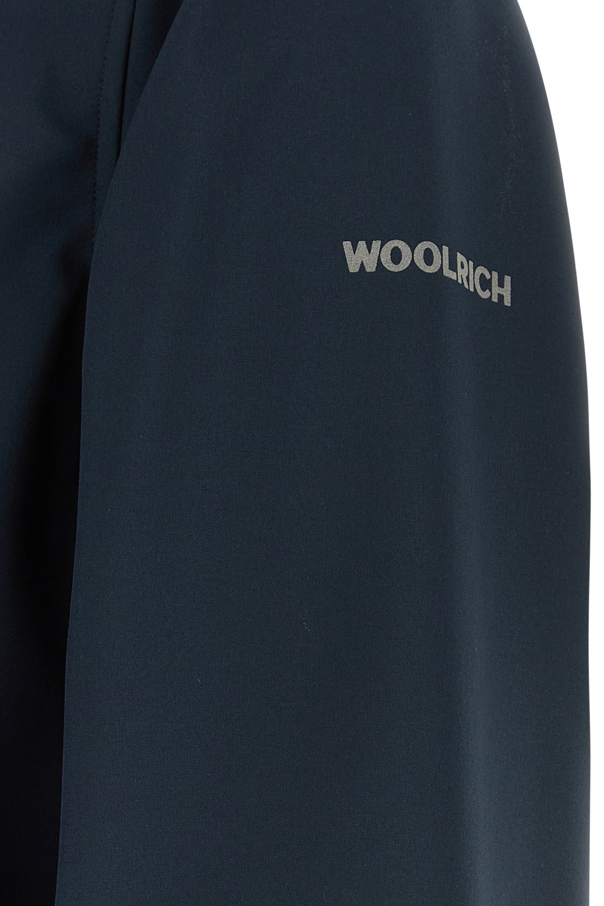 Jacket realized in stretch polyester characterized by contrasting printed logo on the sleeve.