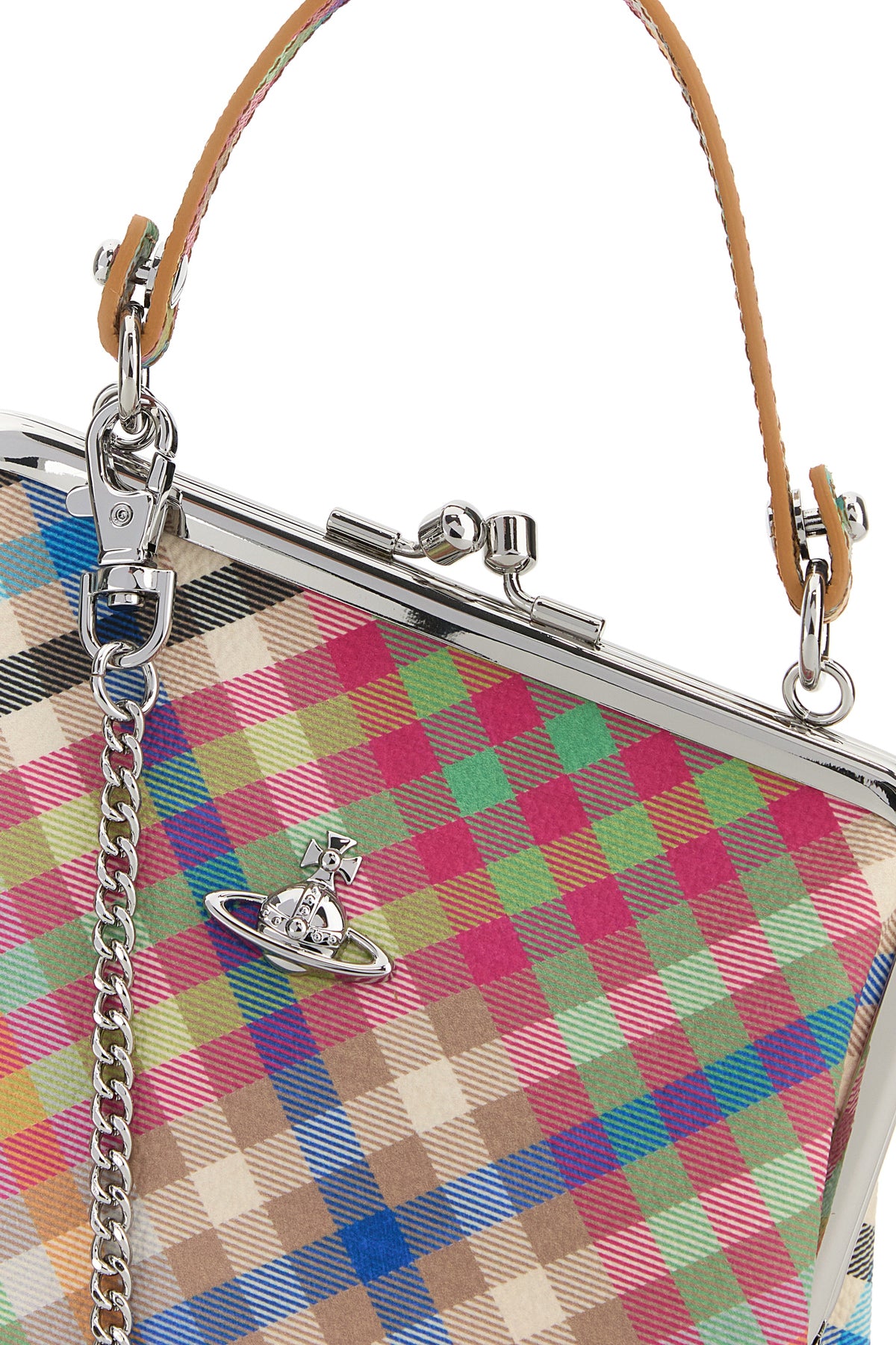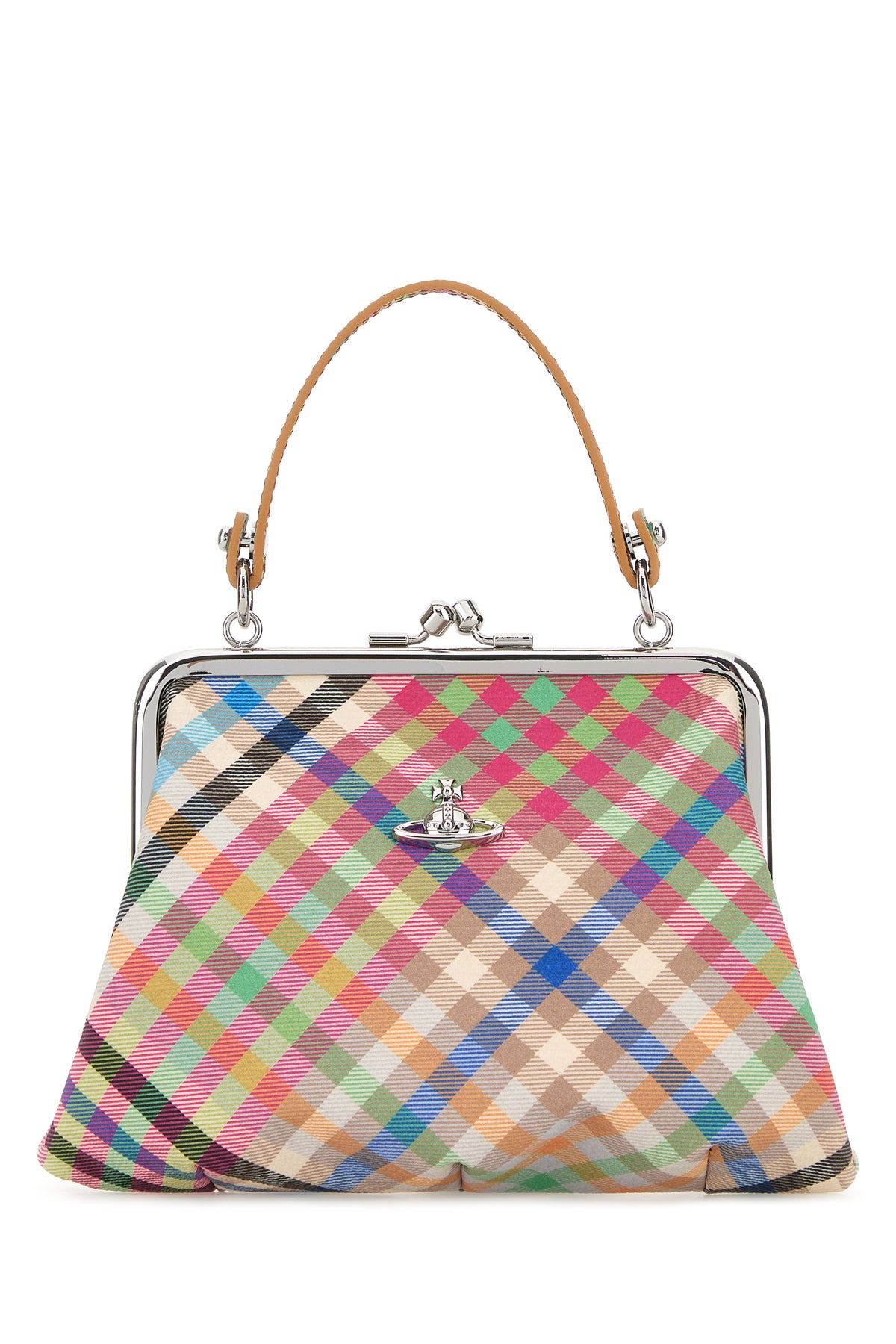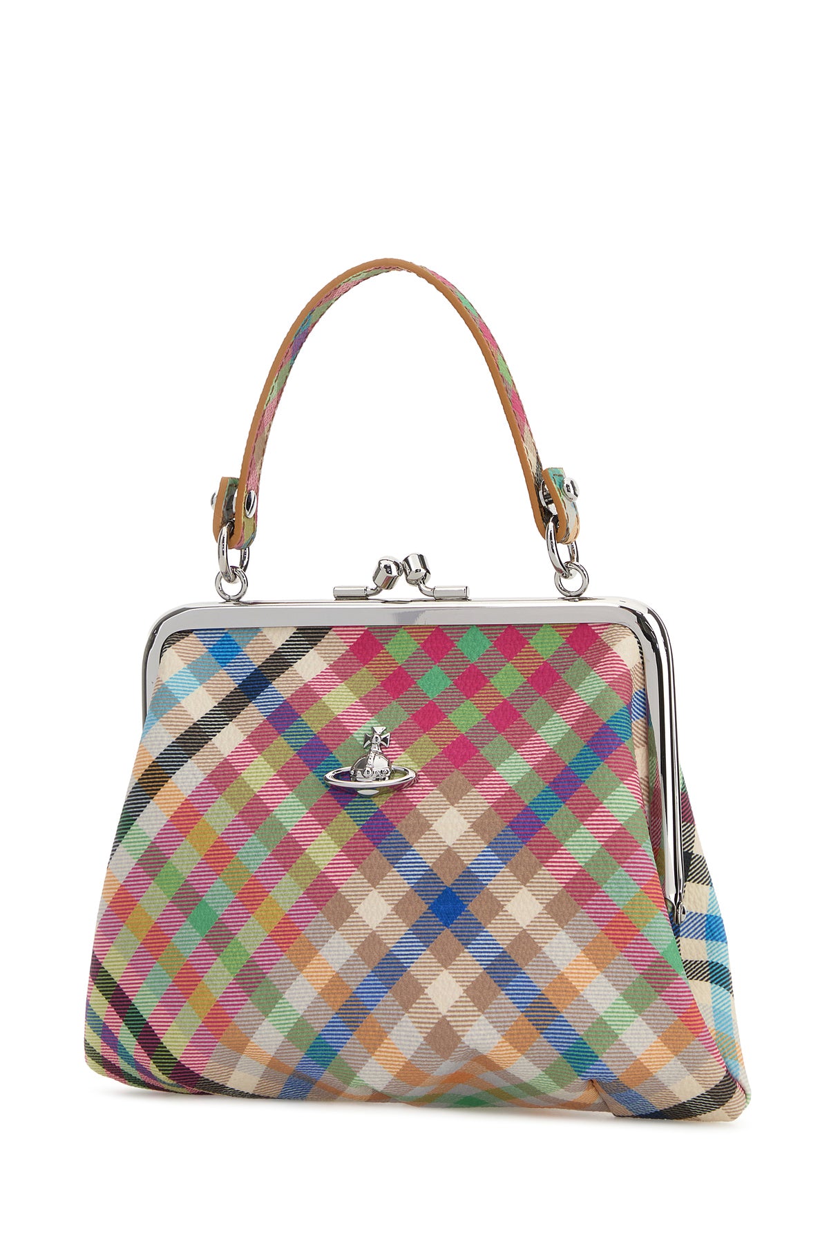 Handbag realized in coated canvas cahracterized by checked print on the entire surface enriched by Orb metal detail at the front.