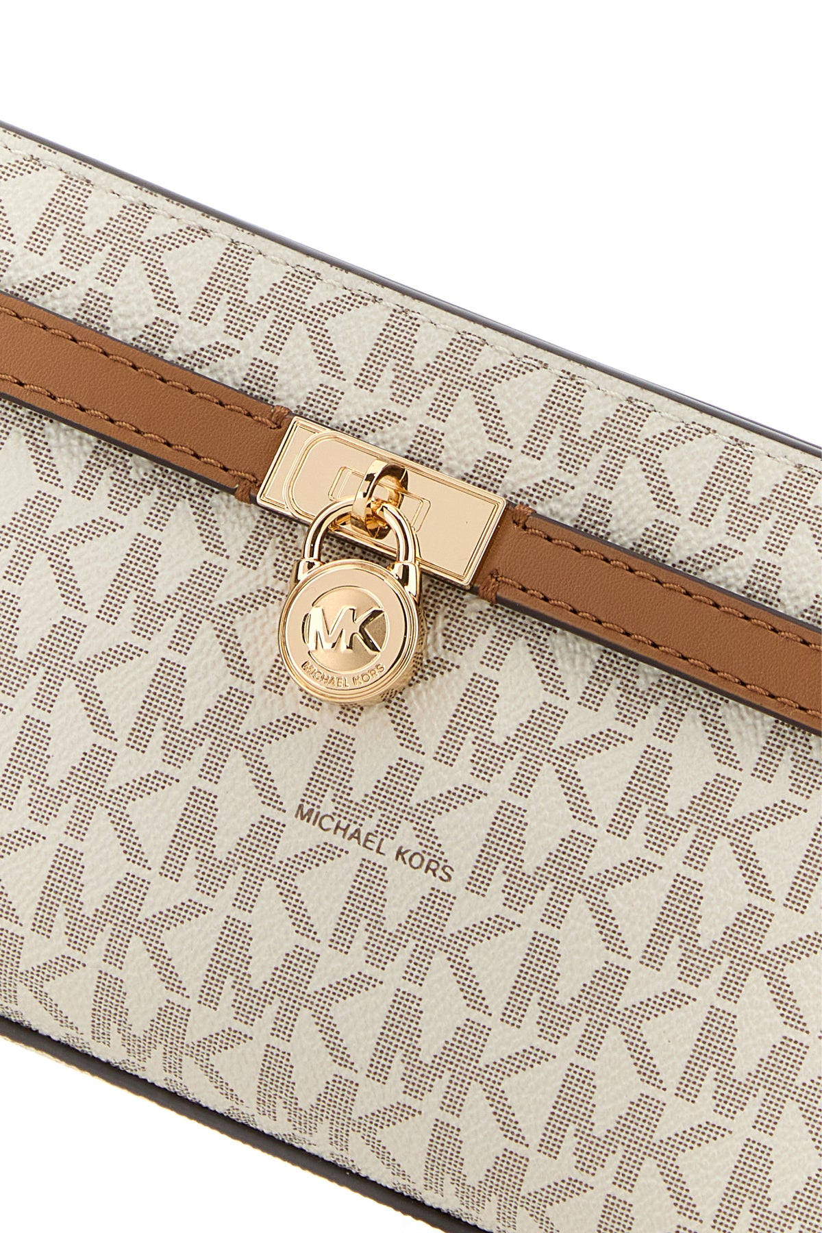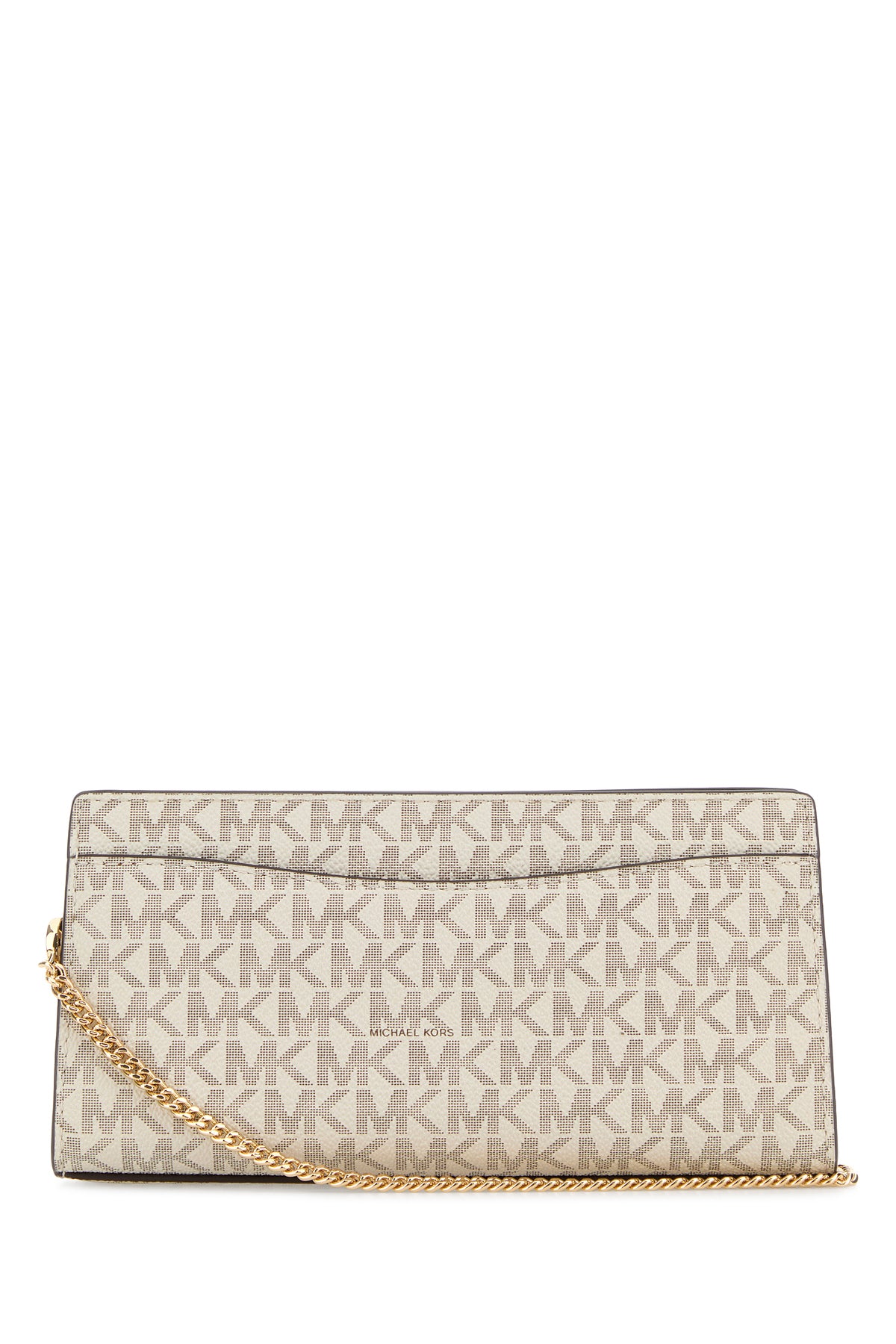 Crossbody bag realized in coated canvas characterized by logoed print on the entire surface enriched by logoed metal detail at the front.