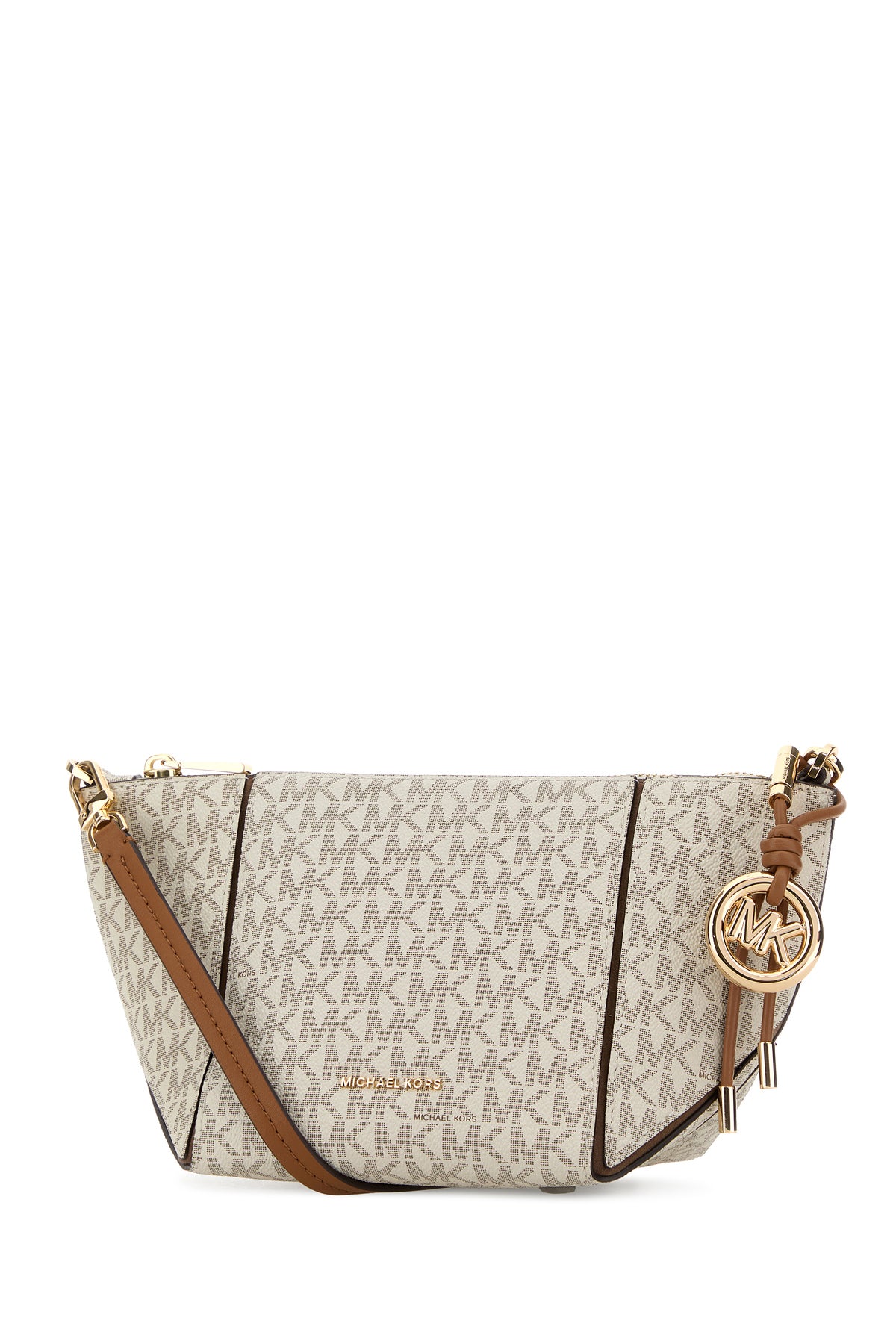 Crossbody bag realized in coated canvas characterized by logoed print on the entire surface enriched by metal lettering logo at the front.