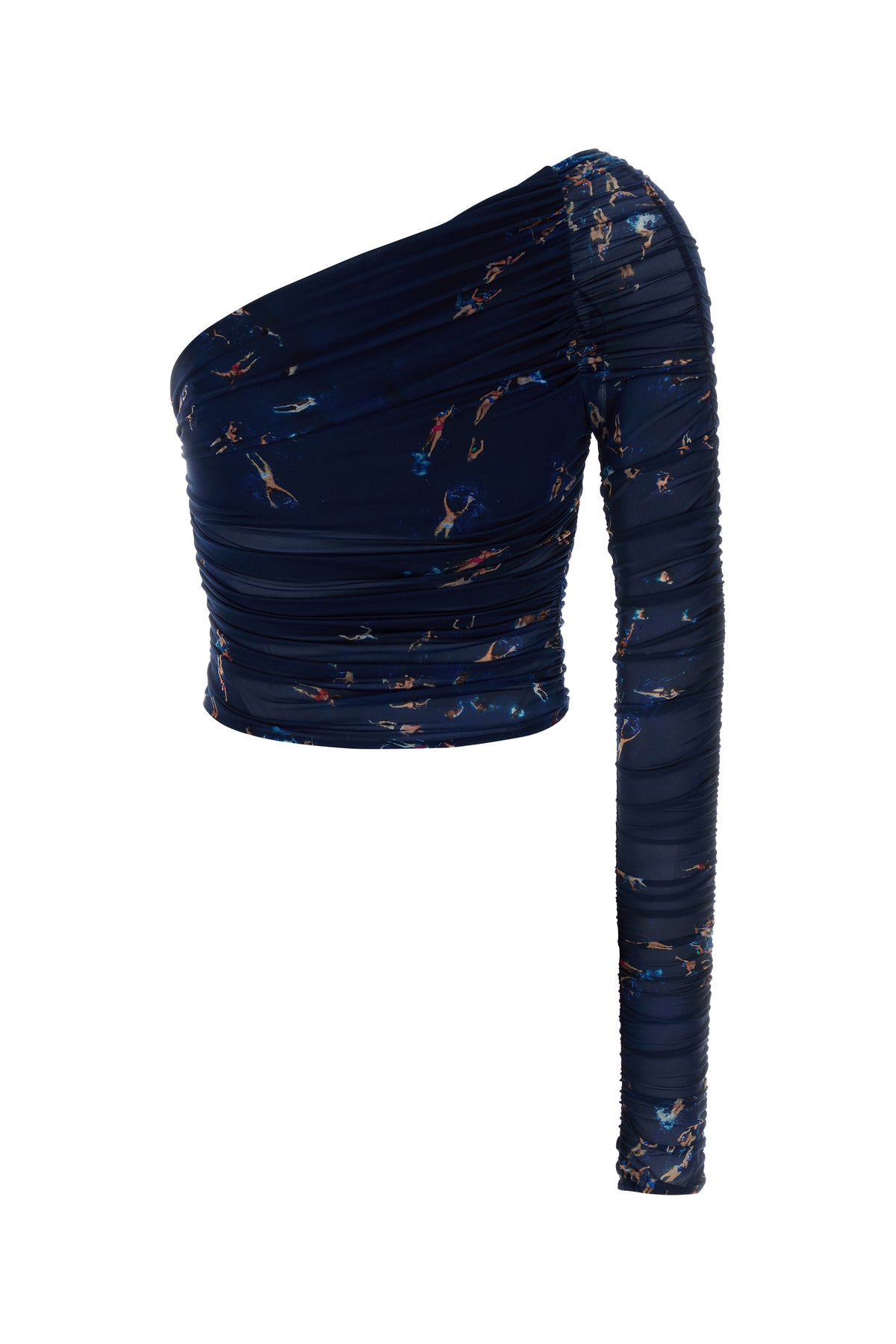 One-shoulder top realized in stretch nylon characterized by peculiar print on the entire surface.