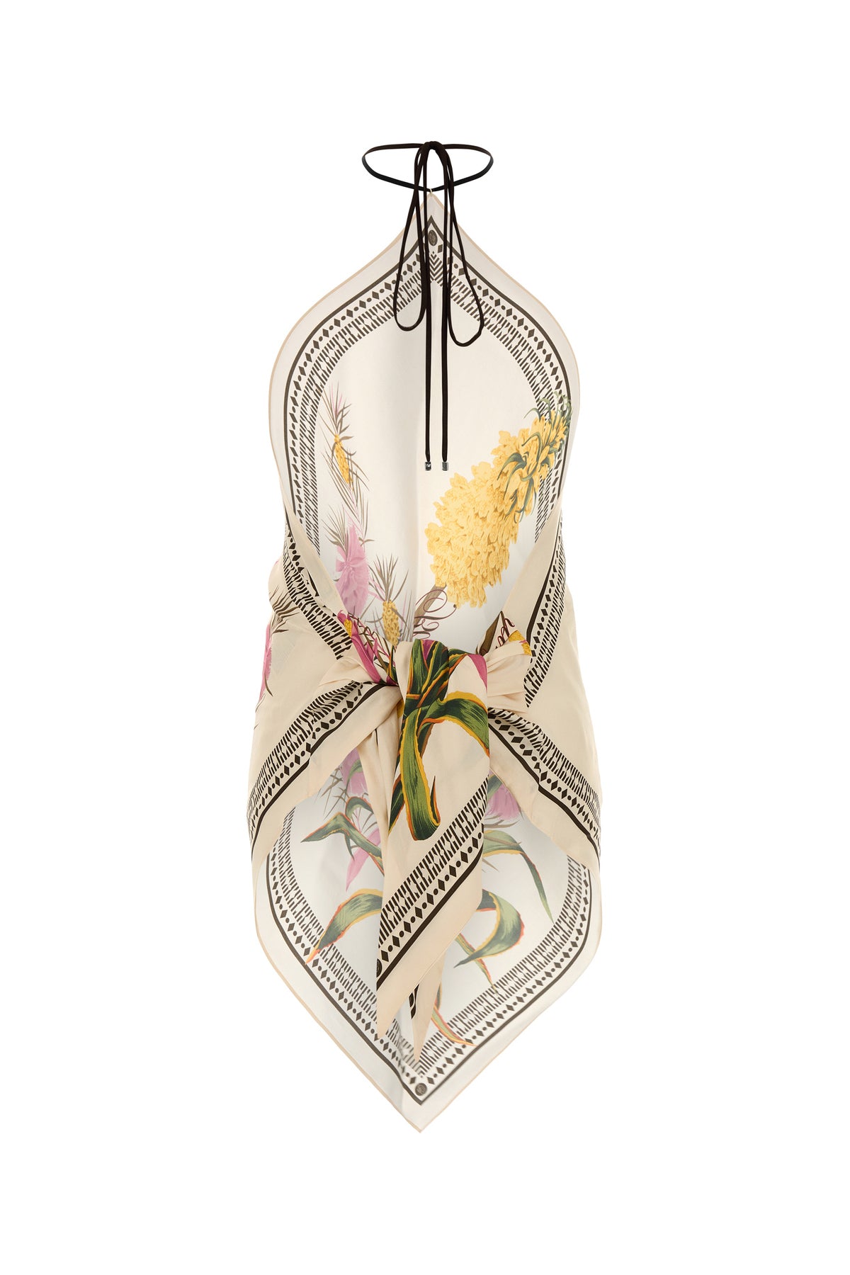 Top realized in viscose twill characterized by Foulard print on the entire surface.