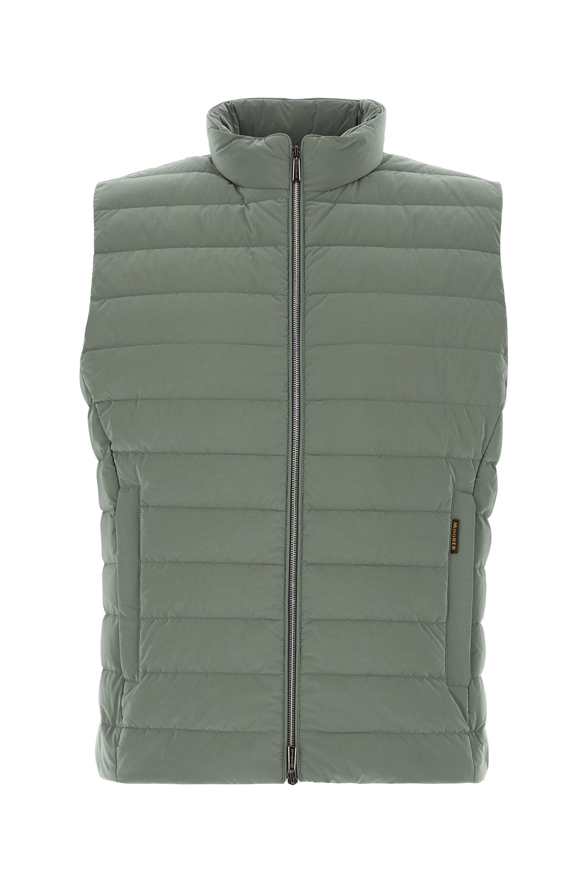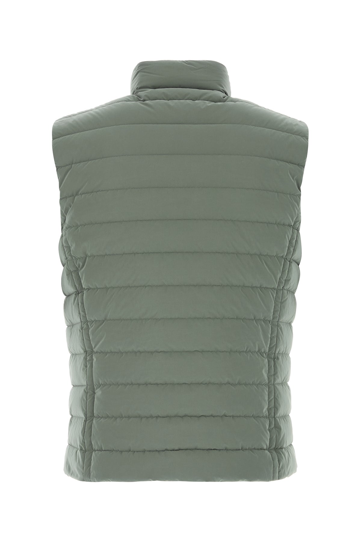 Sleeveless down jacket realized in quilted nylon blend enriched by logoed label at the front.
