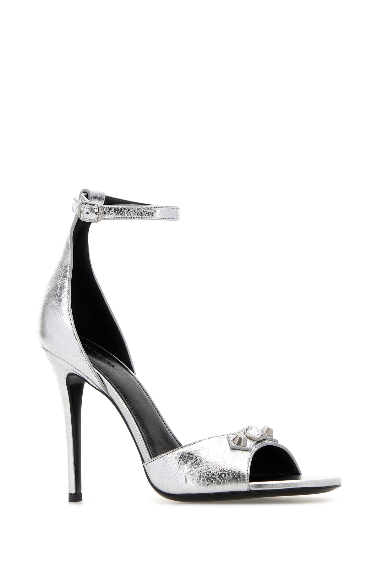 Sandals realized in laminated leather enriched by metal studs on the decorative strap on the instep.