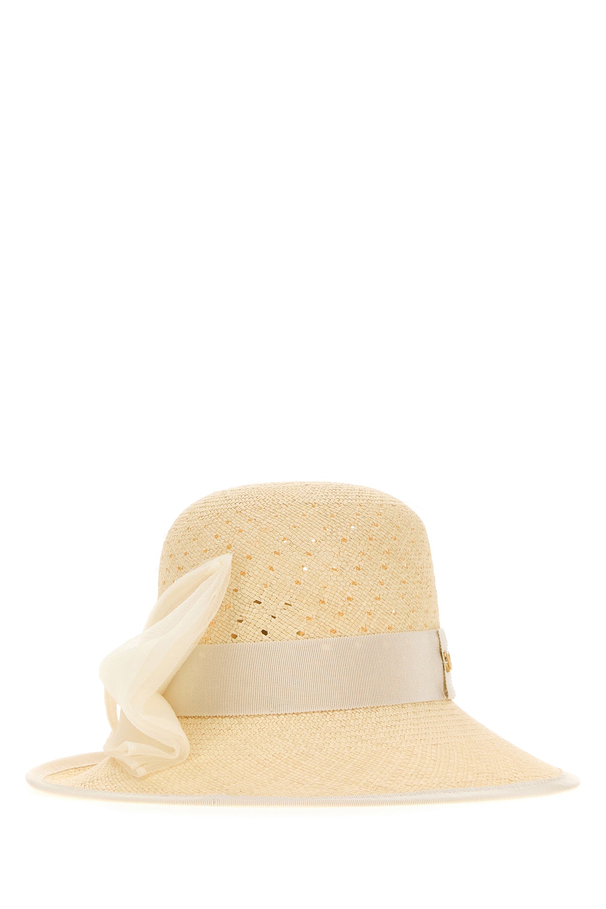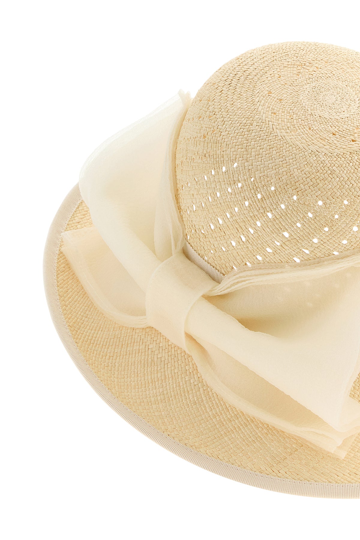 Hat realized in perforated straw enriched by maxi decorative organza bow and metal VLogo detail on the sides.