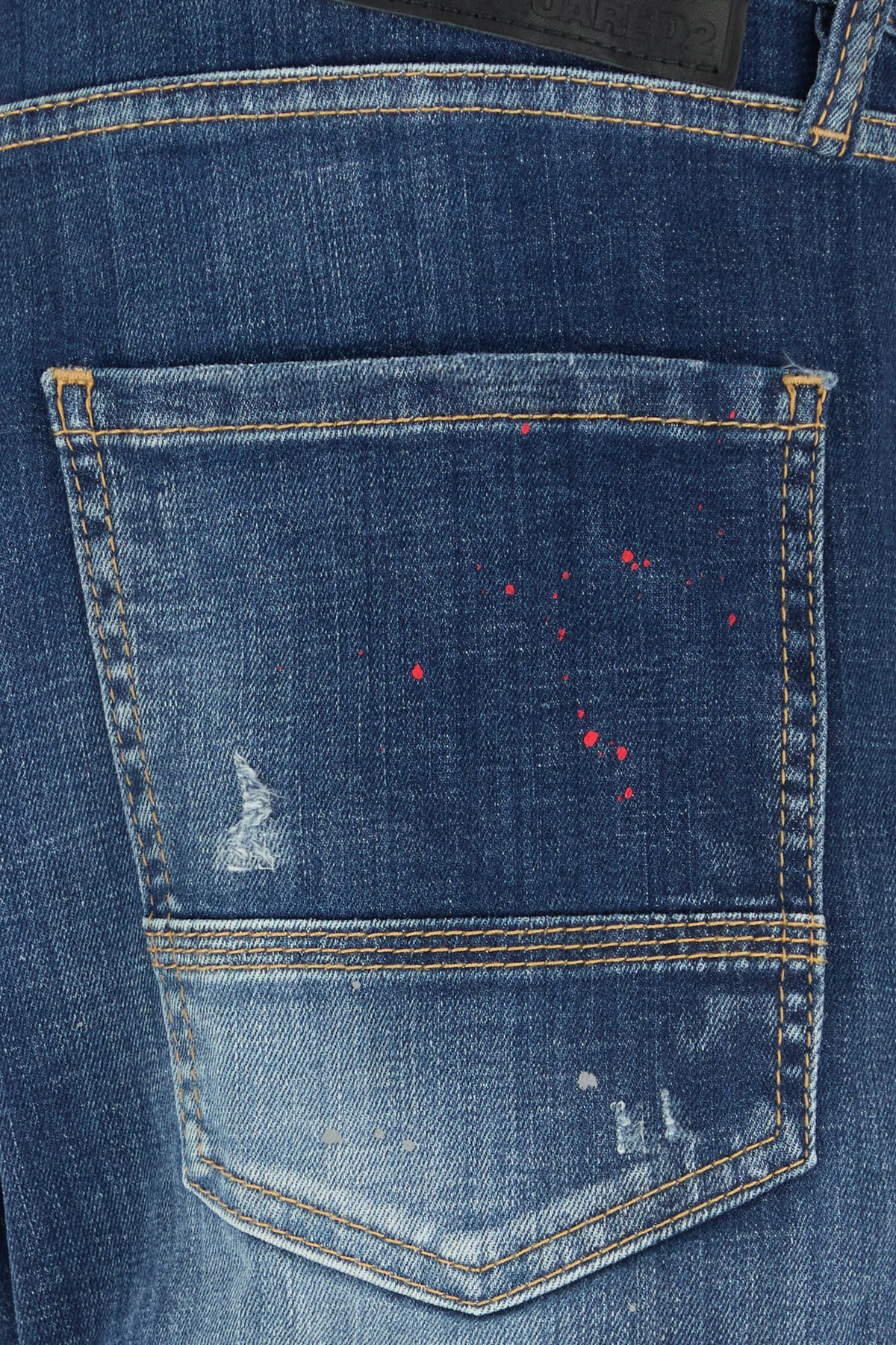 Jeans realized in stonewashed stretch cotton denim with intentional rips and dirties enriched by logoed label at the back.