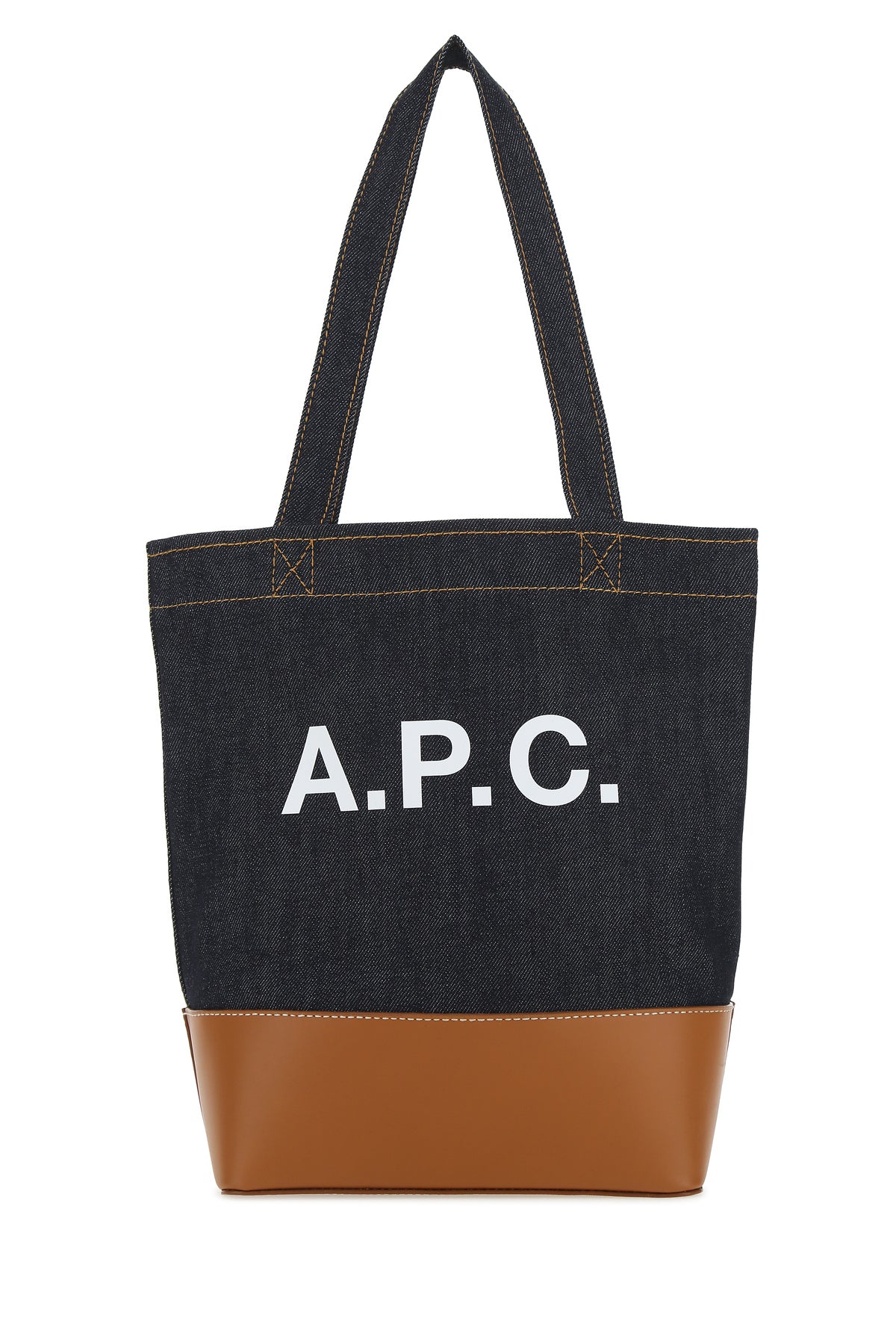 Shopping bag realized in denim and smooth leather characterized by printed logo at the front.