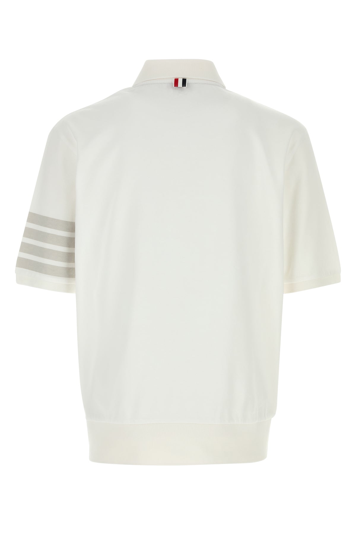 Polo shirt realized in pure cotton characterized by striped embroidery on the sleeve enriched by logoed label on the hemline and iconico tricolor label at the back.