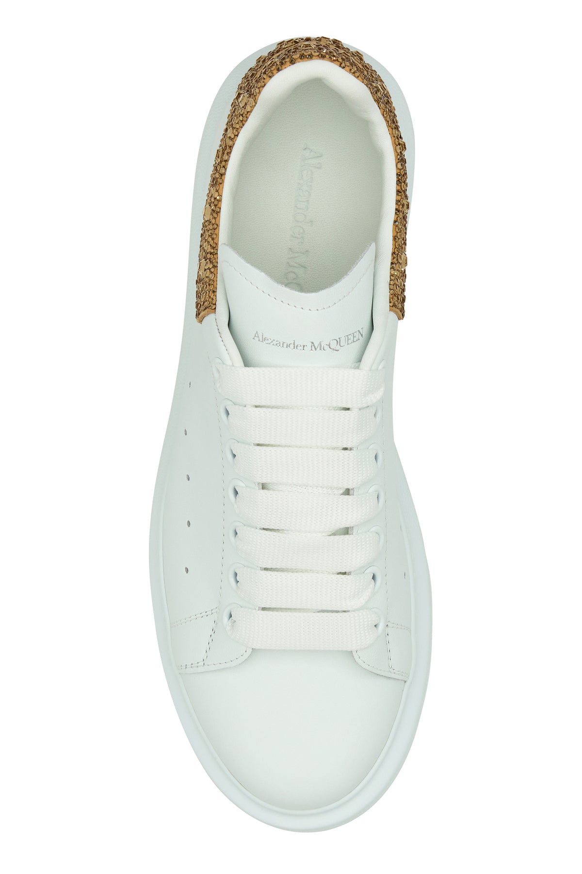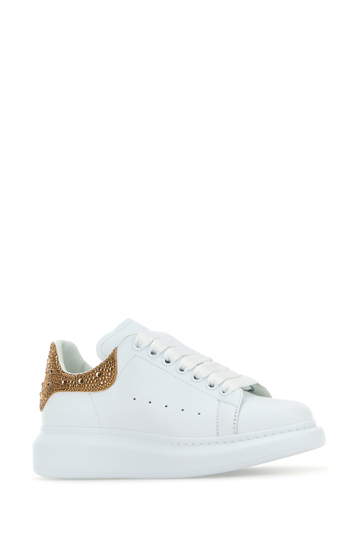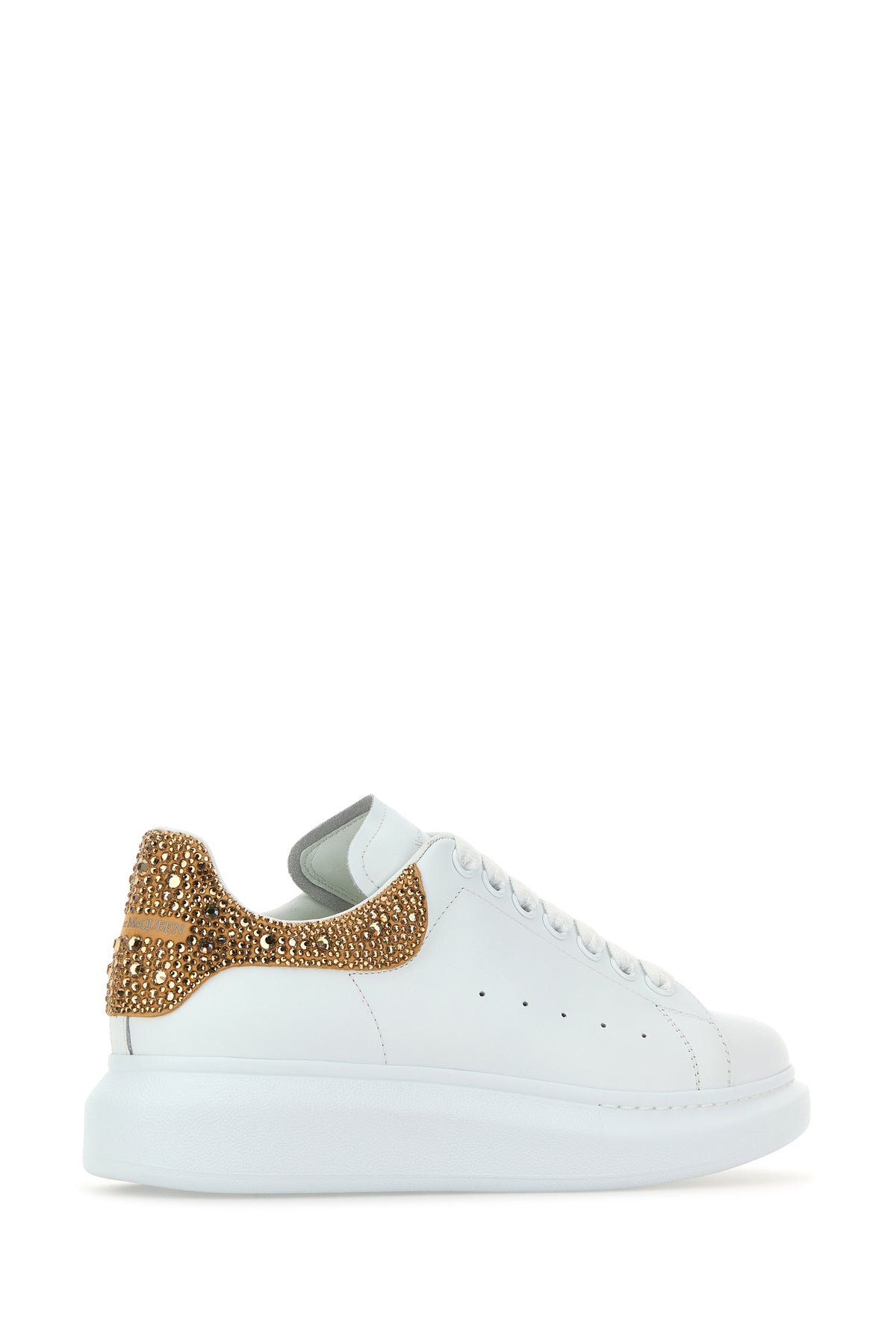 Sneakers realized in smooth calf leather characterized by suede heel with printed logo and rhinestones.