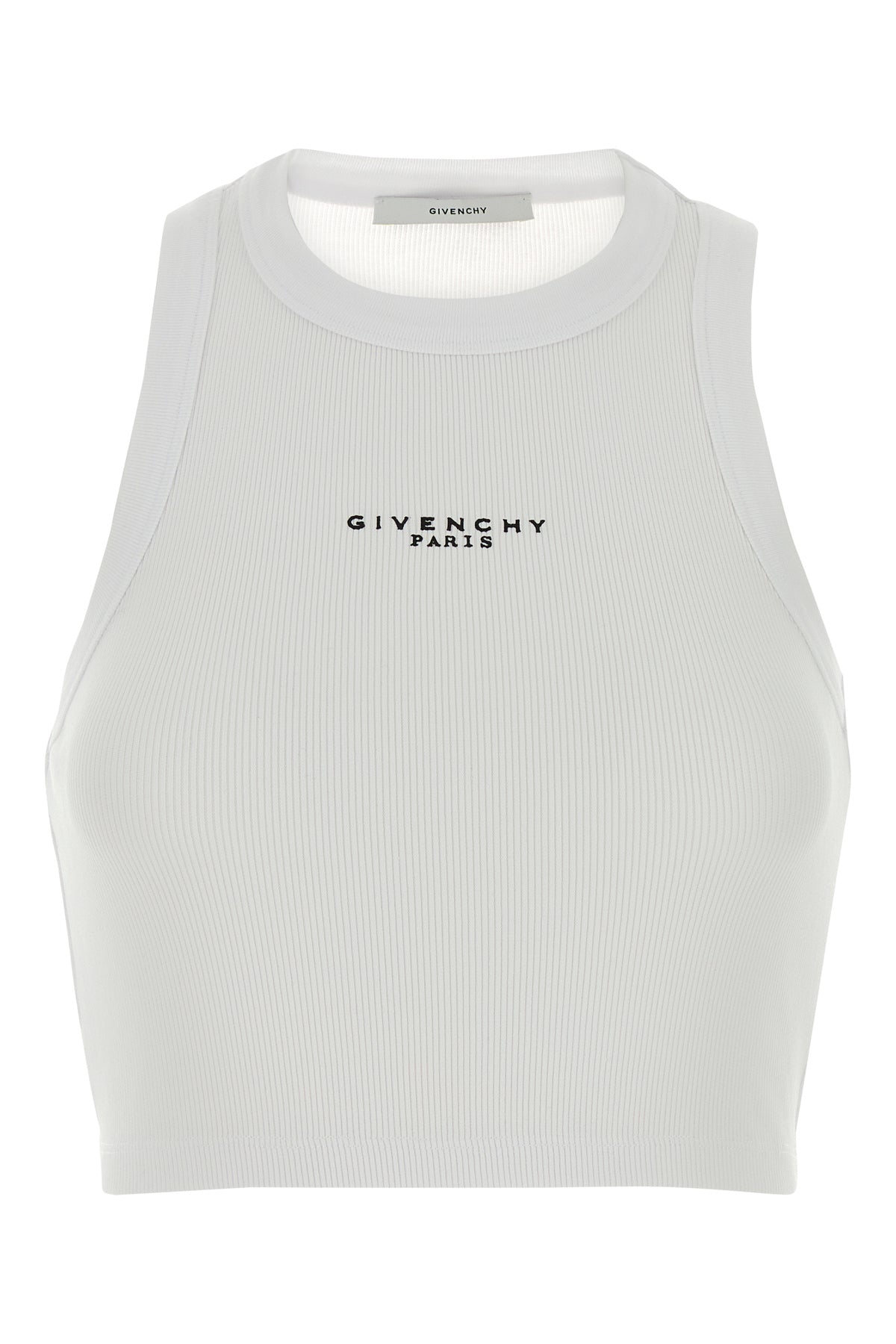 Crop-top realized in stretch cotton characterized by contrasting printed logo on the chest.