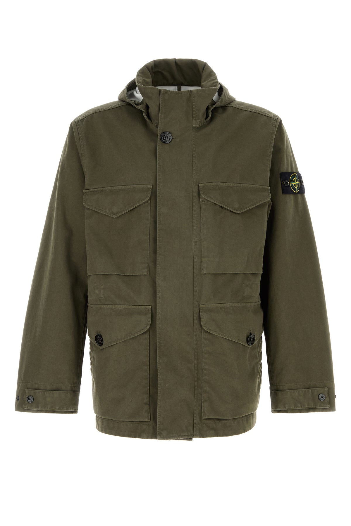 Jacket realized in pure cotton enriched by detachable logoed label on the sleeve.
