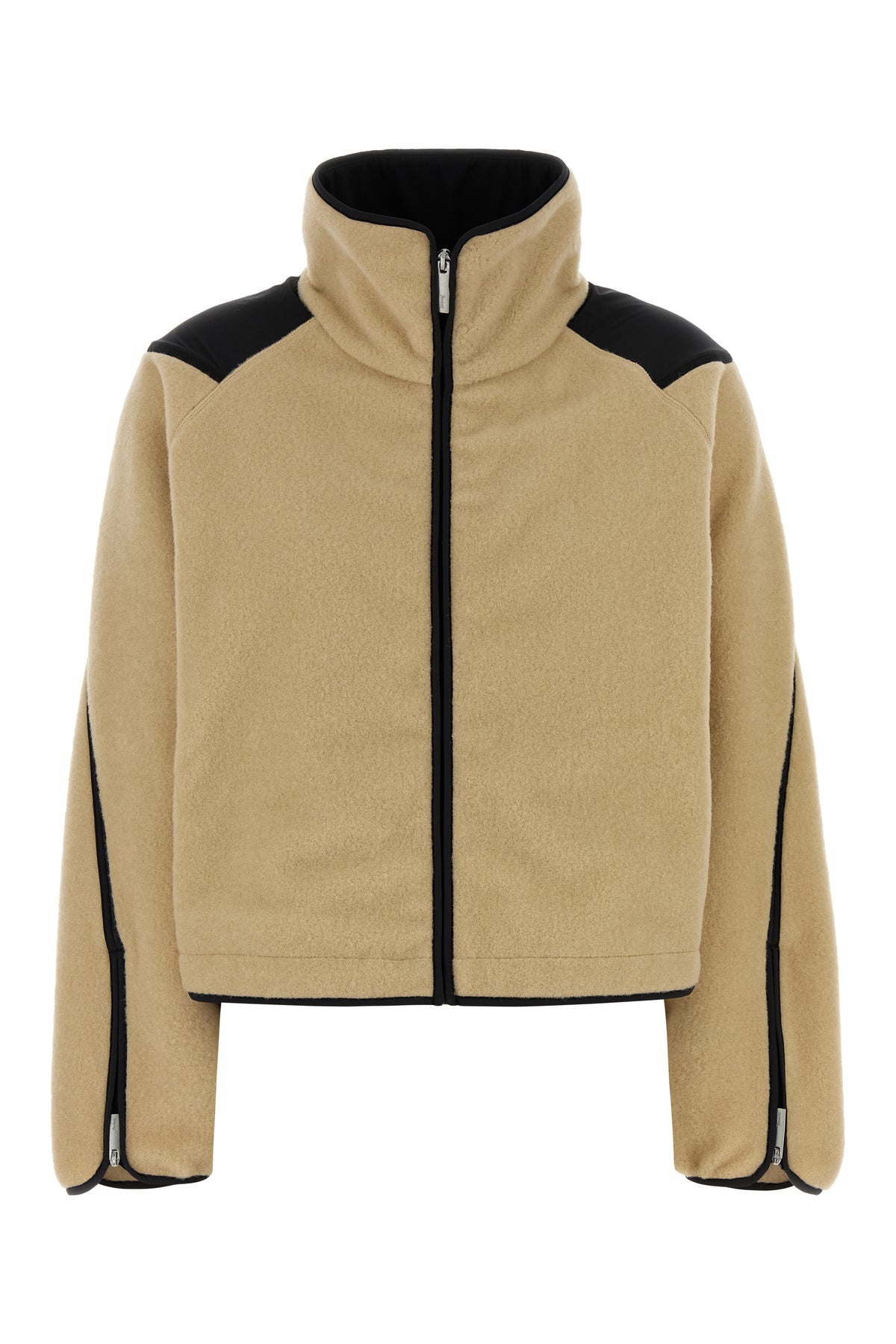 Sweatshirt realized in pile with contrasting tech fabric inserts characterized by embroidered logo at the back.