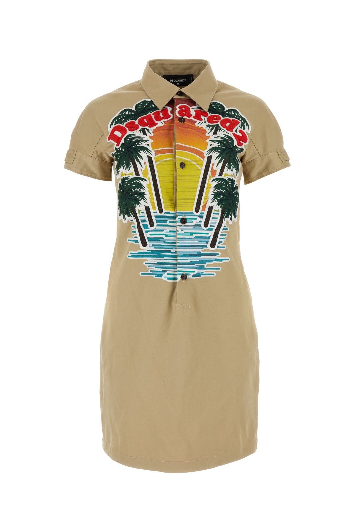 Beige stretch cotton Sunset shirt dress