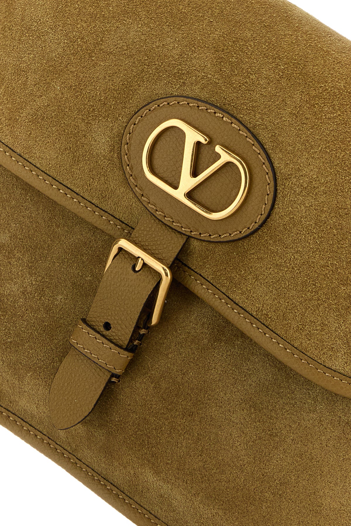 Crossbody bag realized in suede enriched by VLogo Signature metal detail at the front.