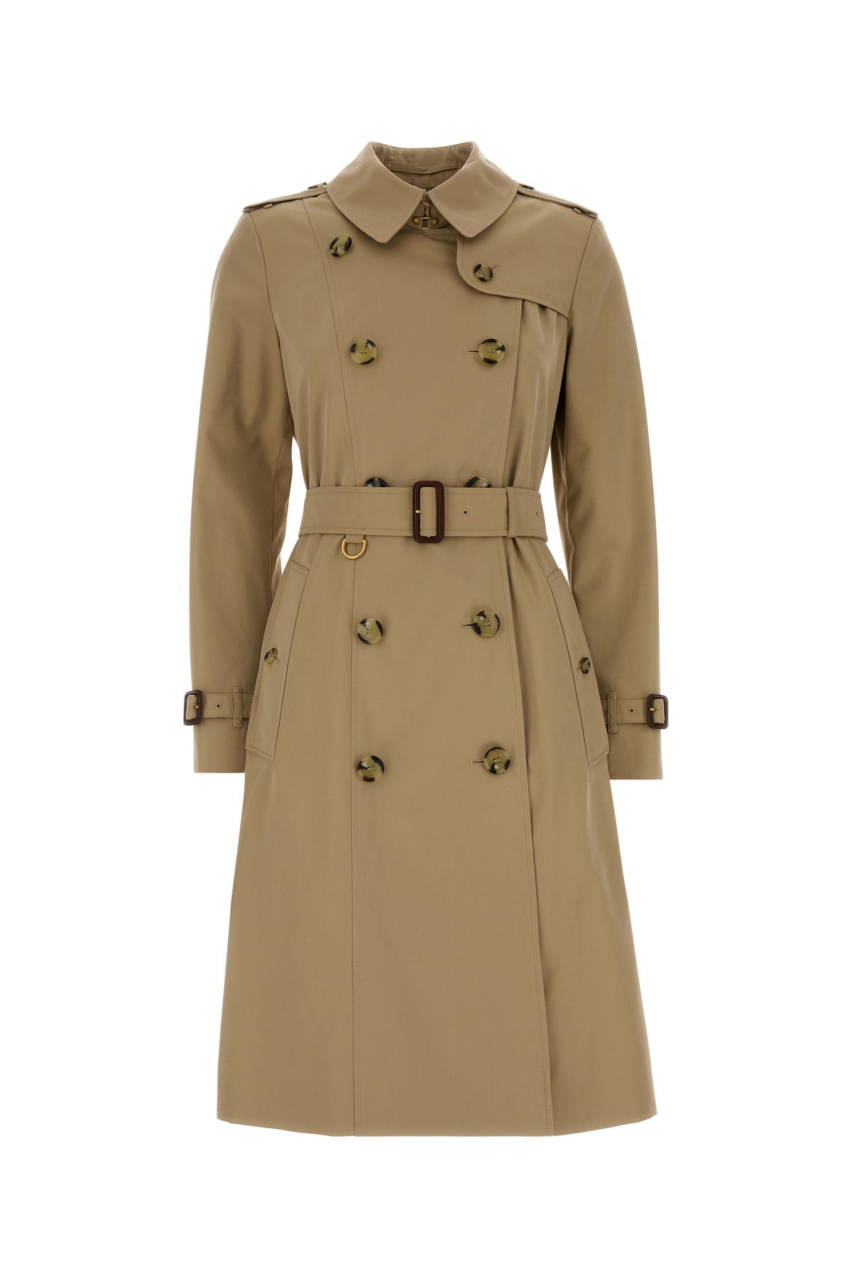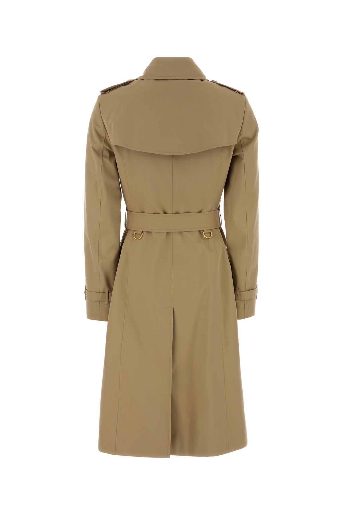 Trench coat realized in pure cotton twill characterized by epaulettes.