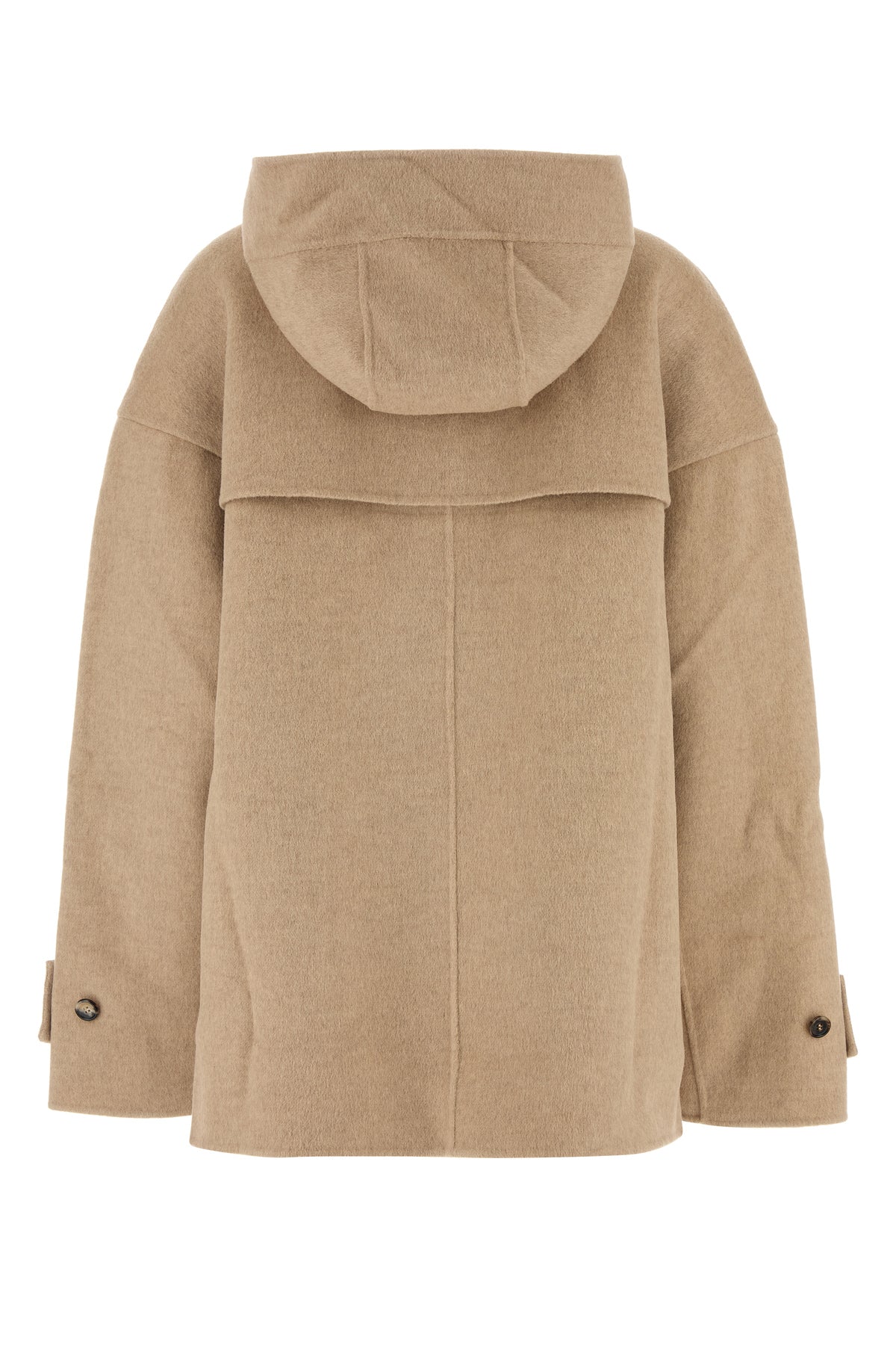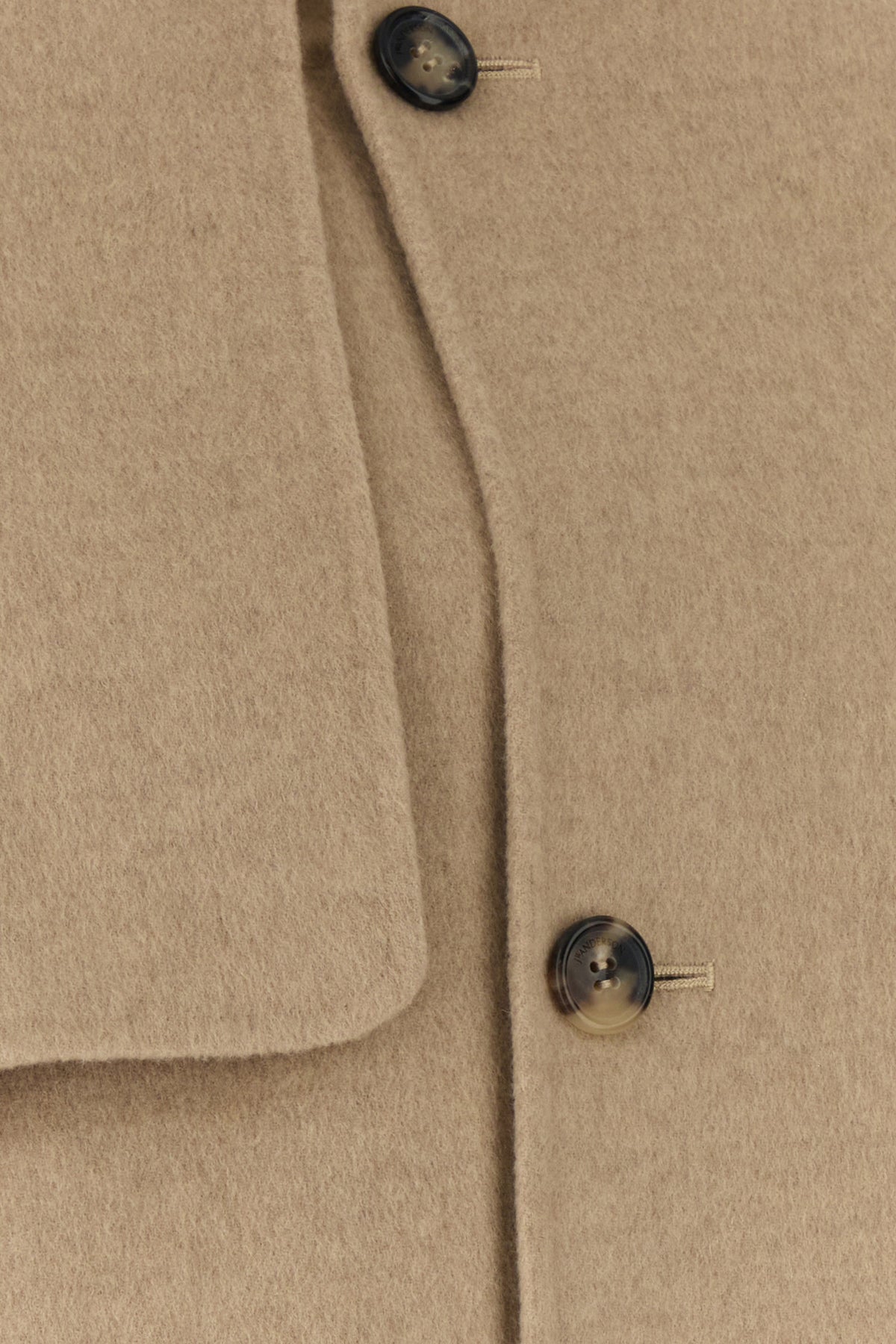 Short-cut coat realized in pure wool enriched by contrasting logoed label at the back.