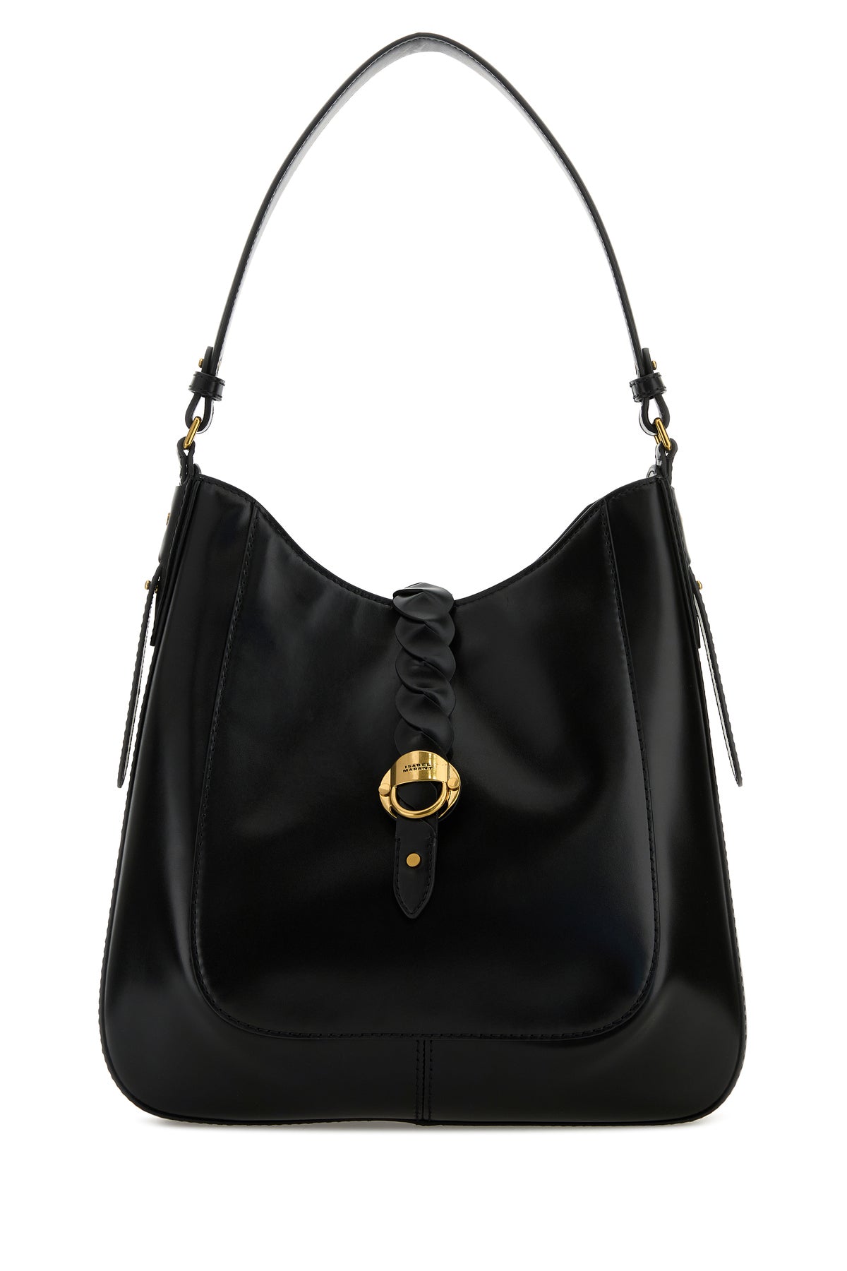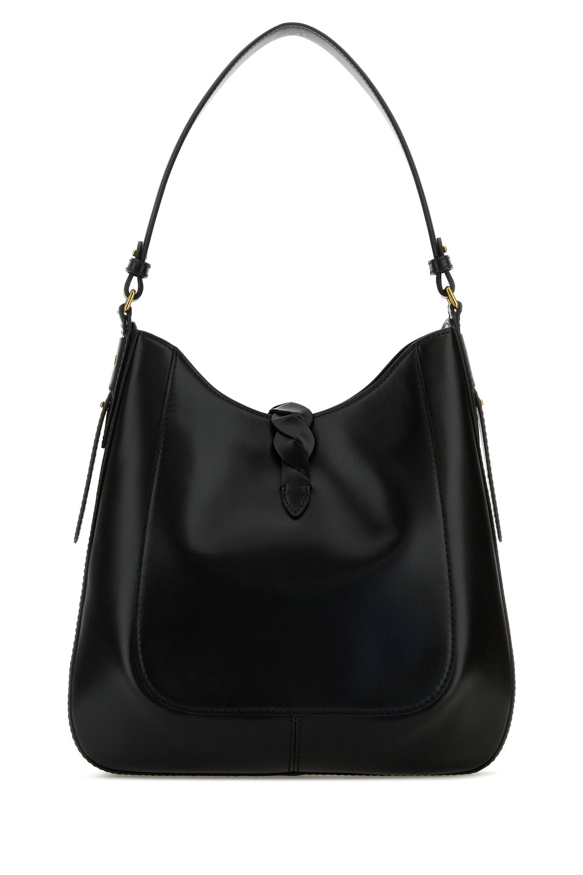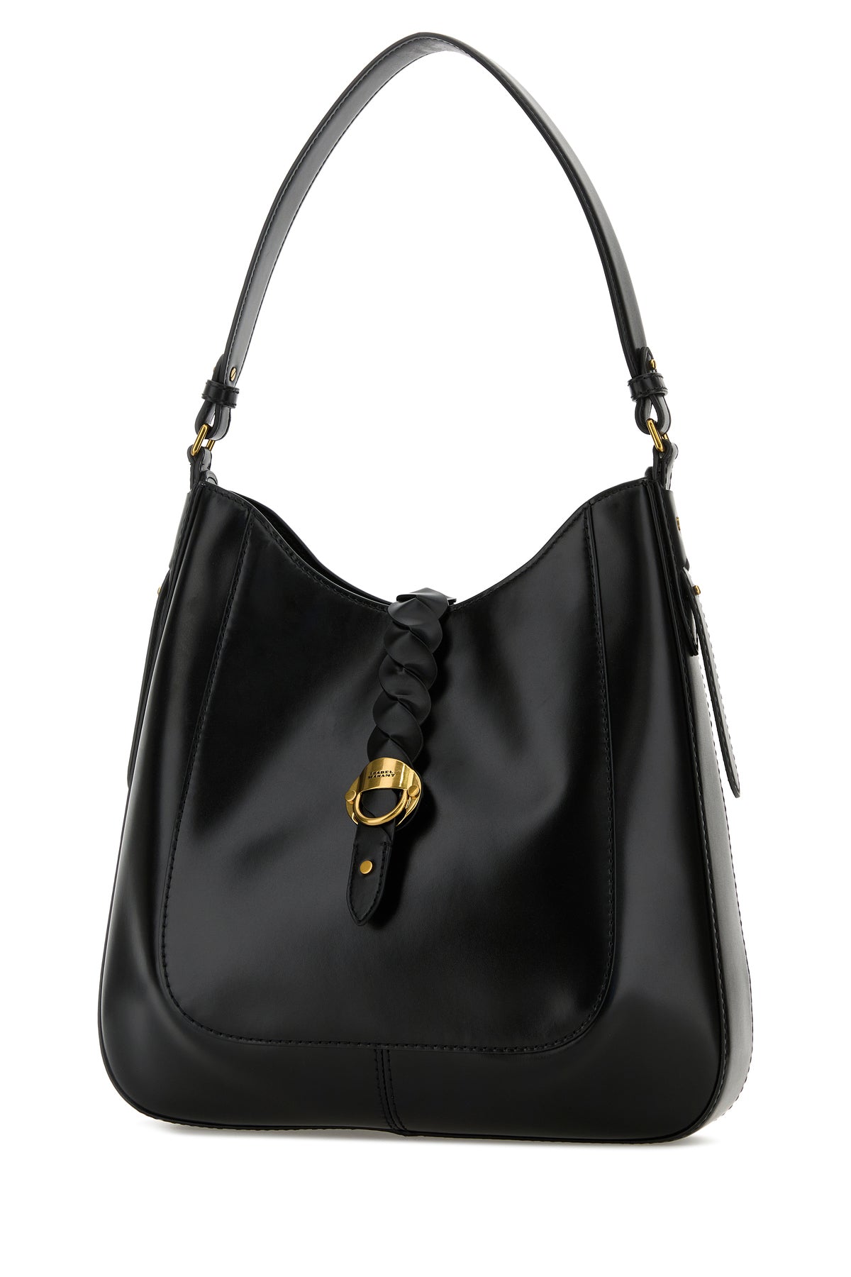 Shoulder bag realized in smooth leather enriched by logged metal detail at the front.