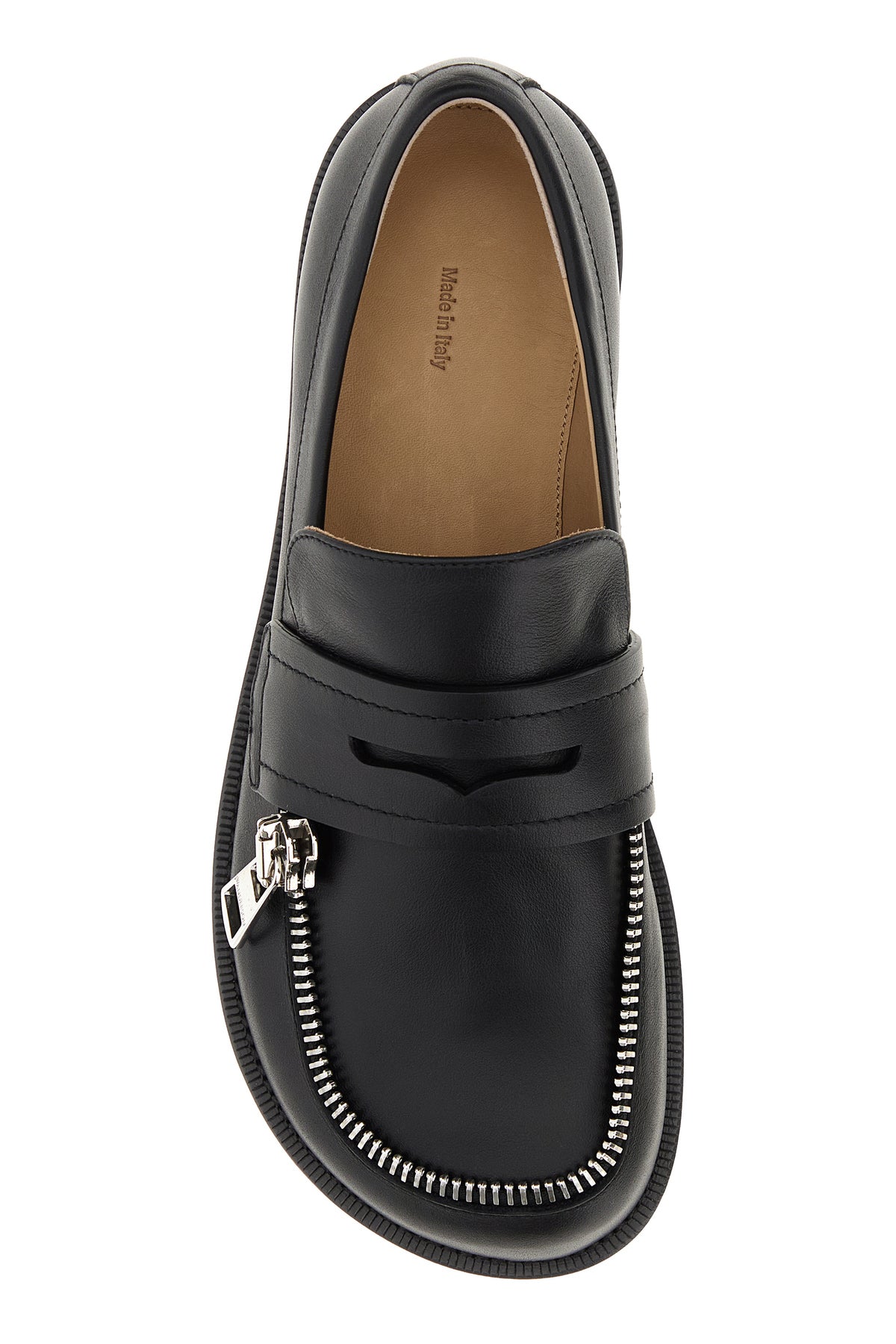 Loafers realized in slightly pebble leather enriched by decorative zip at the front.