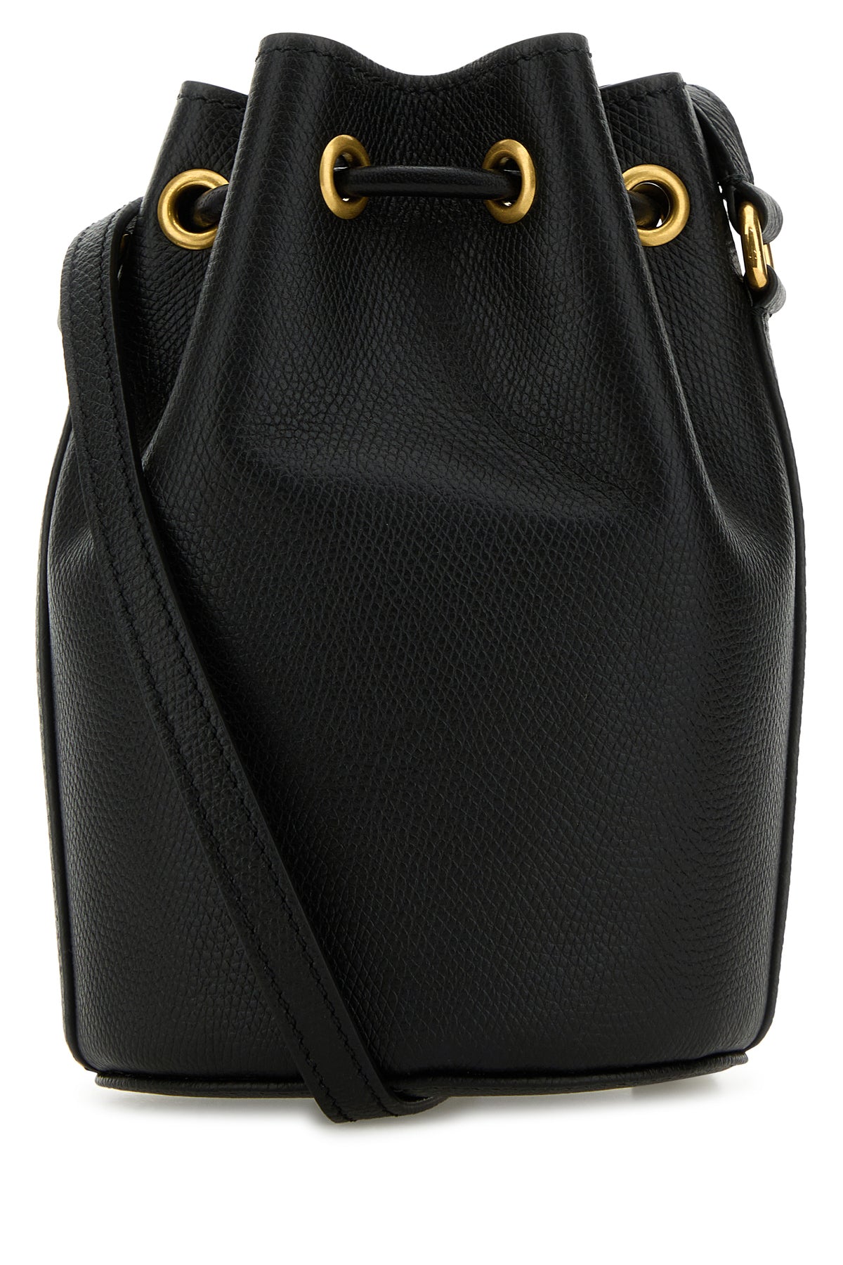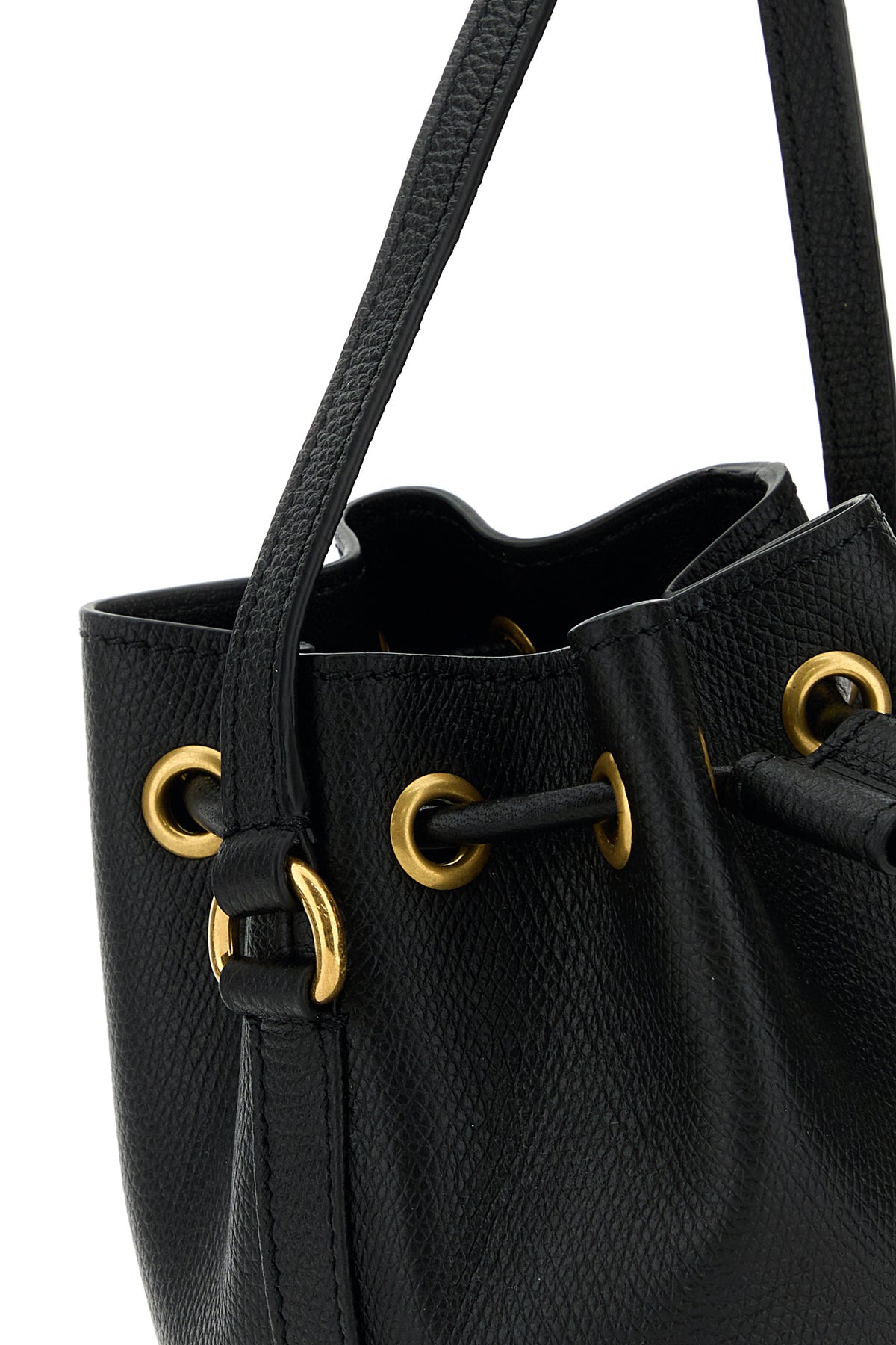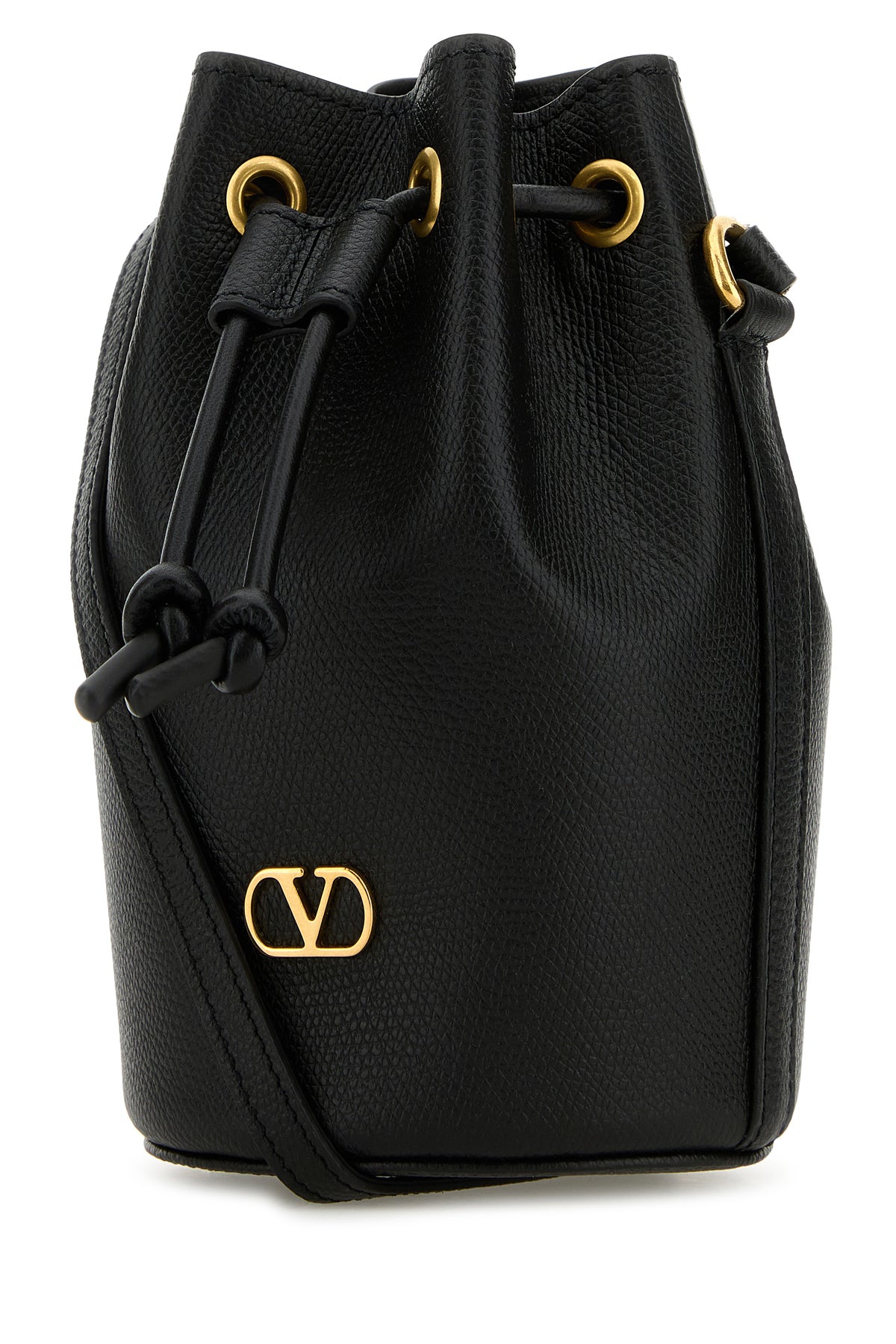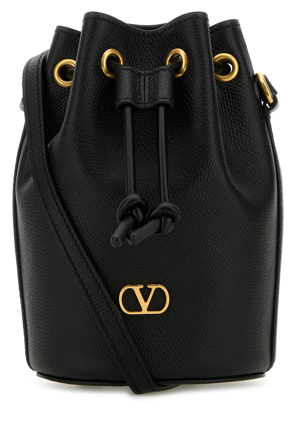 Bucket bag realized in pebble leather enriched by VLogo Signature metal detail at the front.