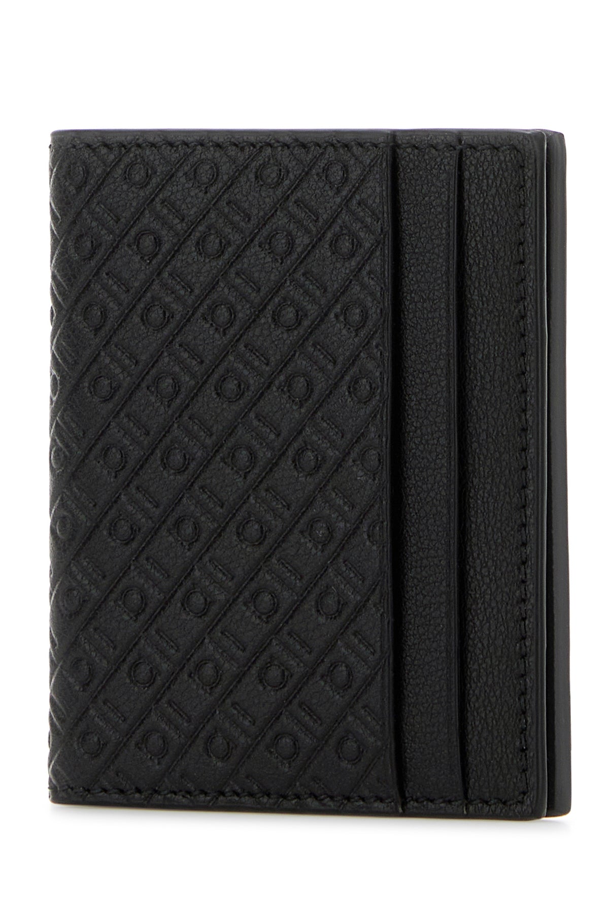 Card holder realized in leather characterized by embossed Gancini motif on the entire surface.