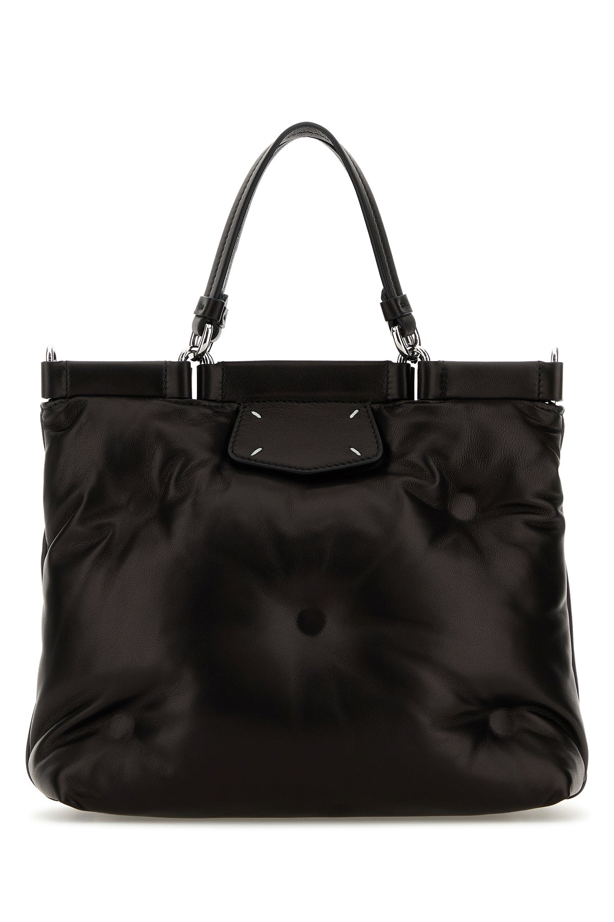 Handbag realized in leather characterized by iconic contrasting stitching at the front.