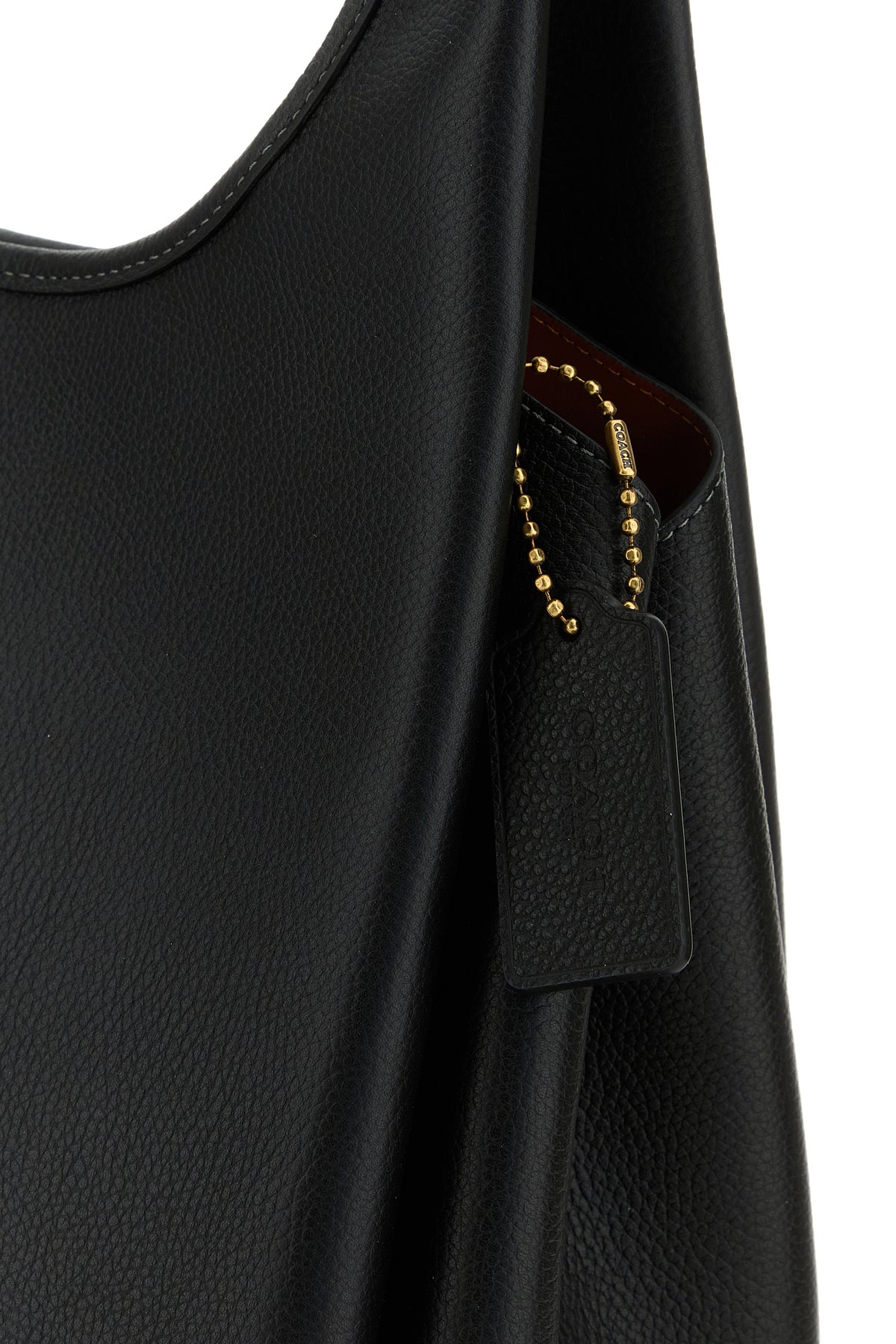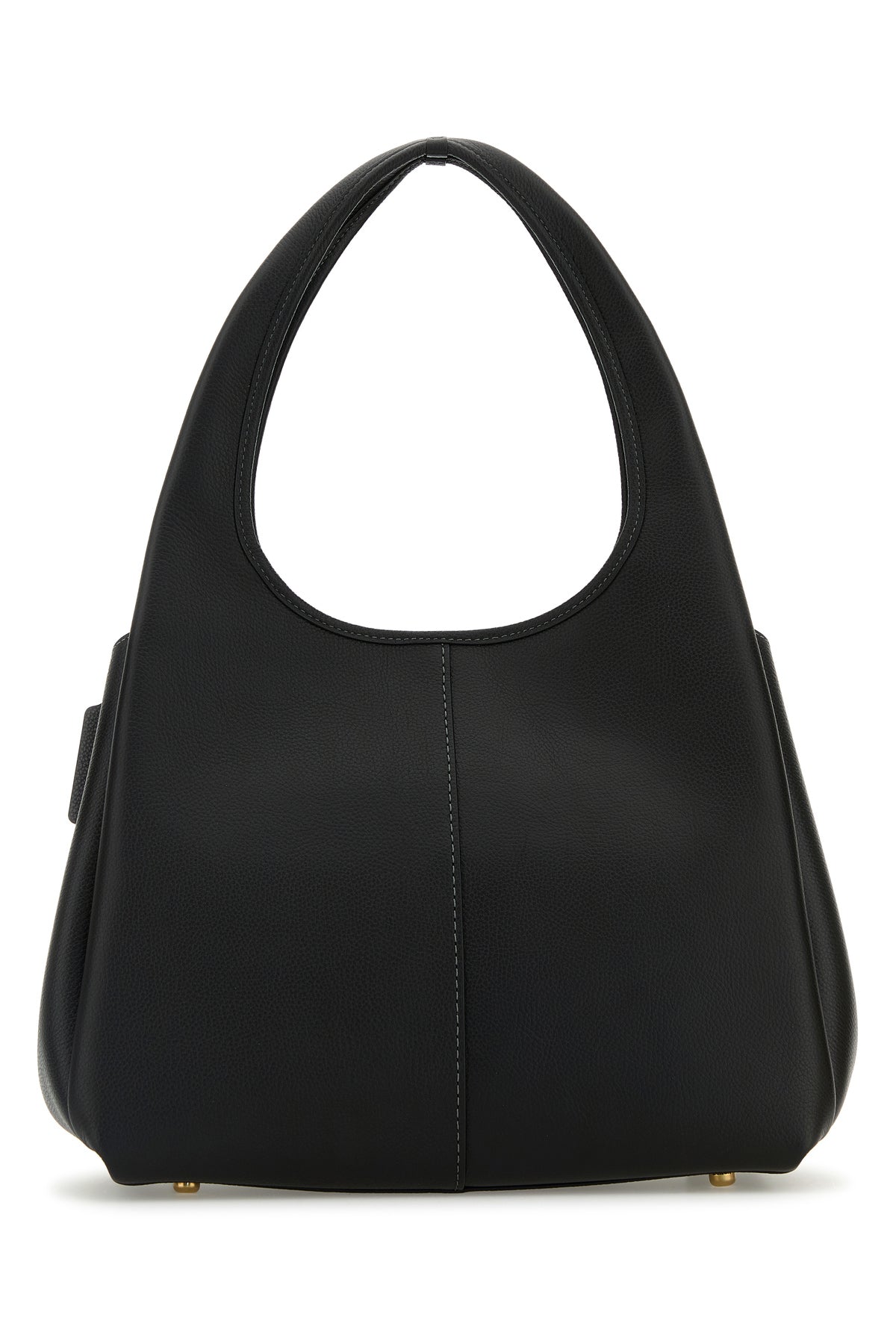 Shopping bag realized in pebble leather enriched by logoed metal detail at the front.