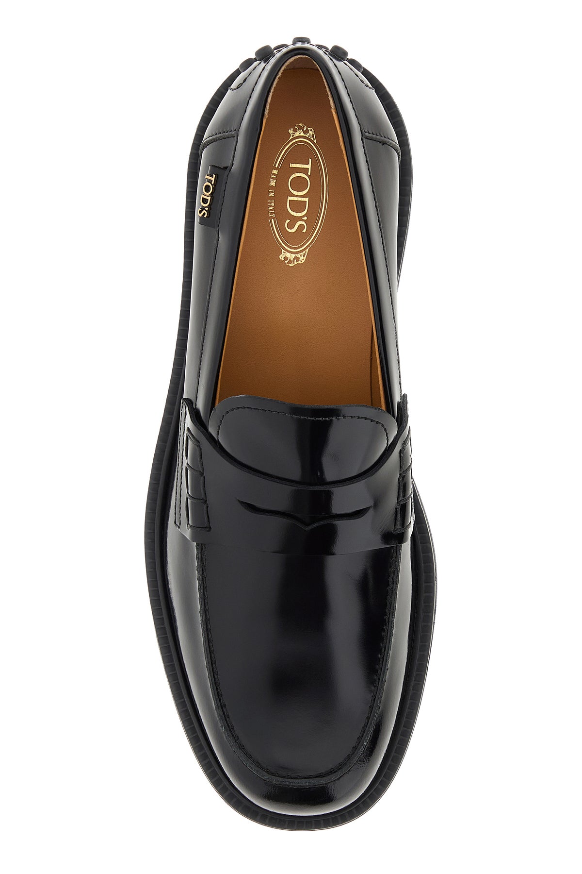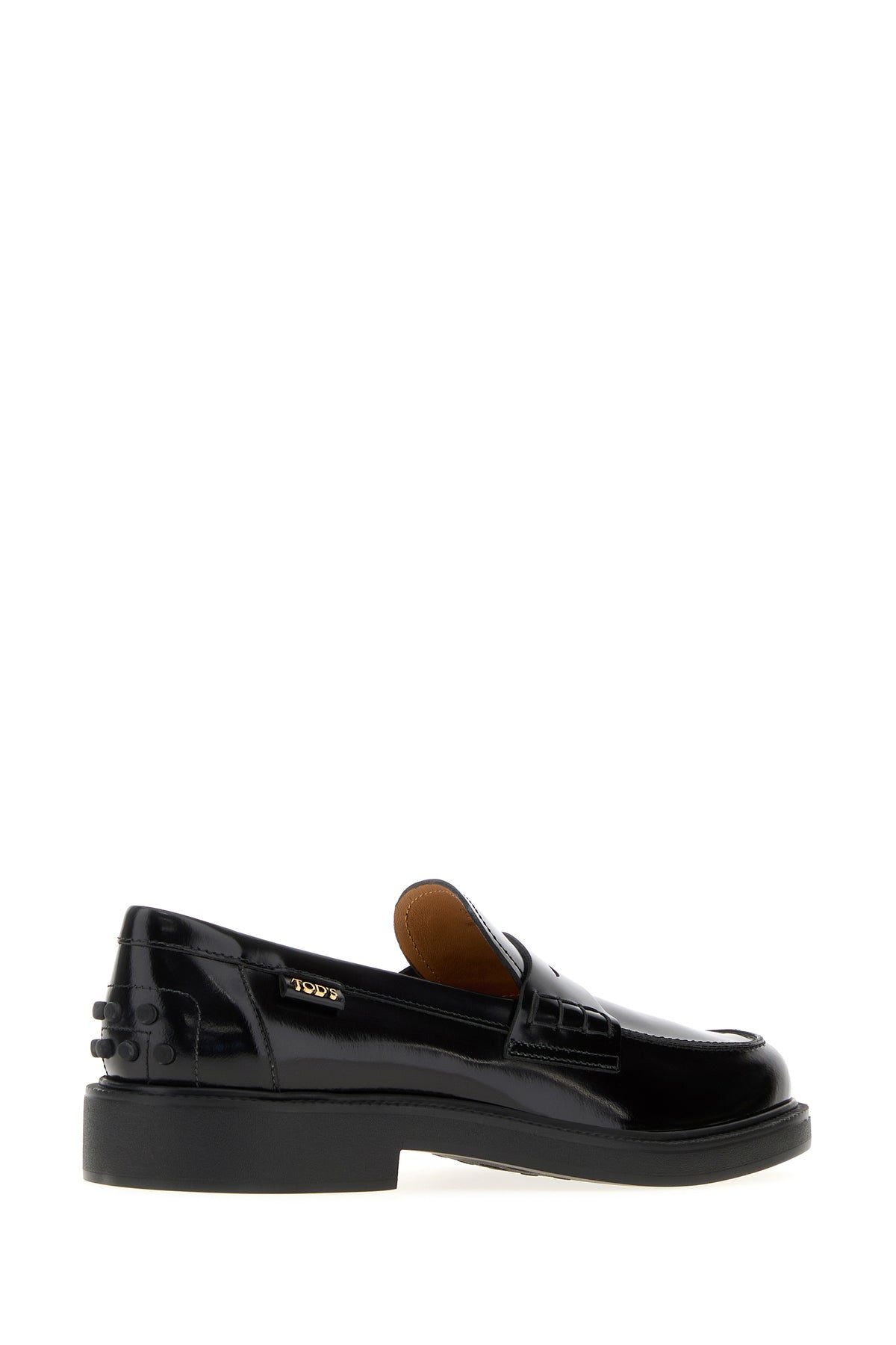 Loafers realized in polished finish leather enriched by metal lettering logo on the side.