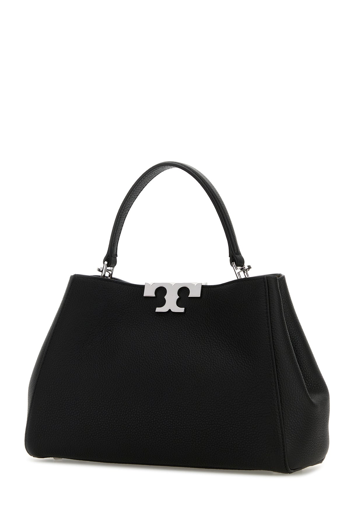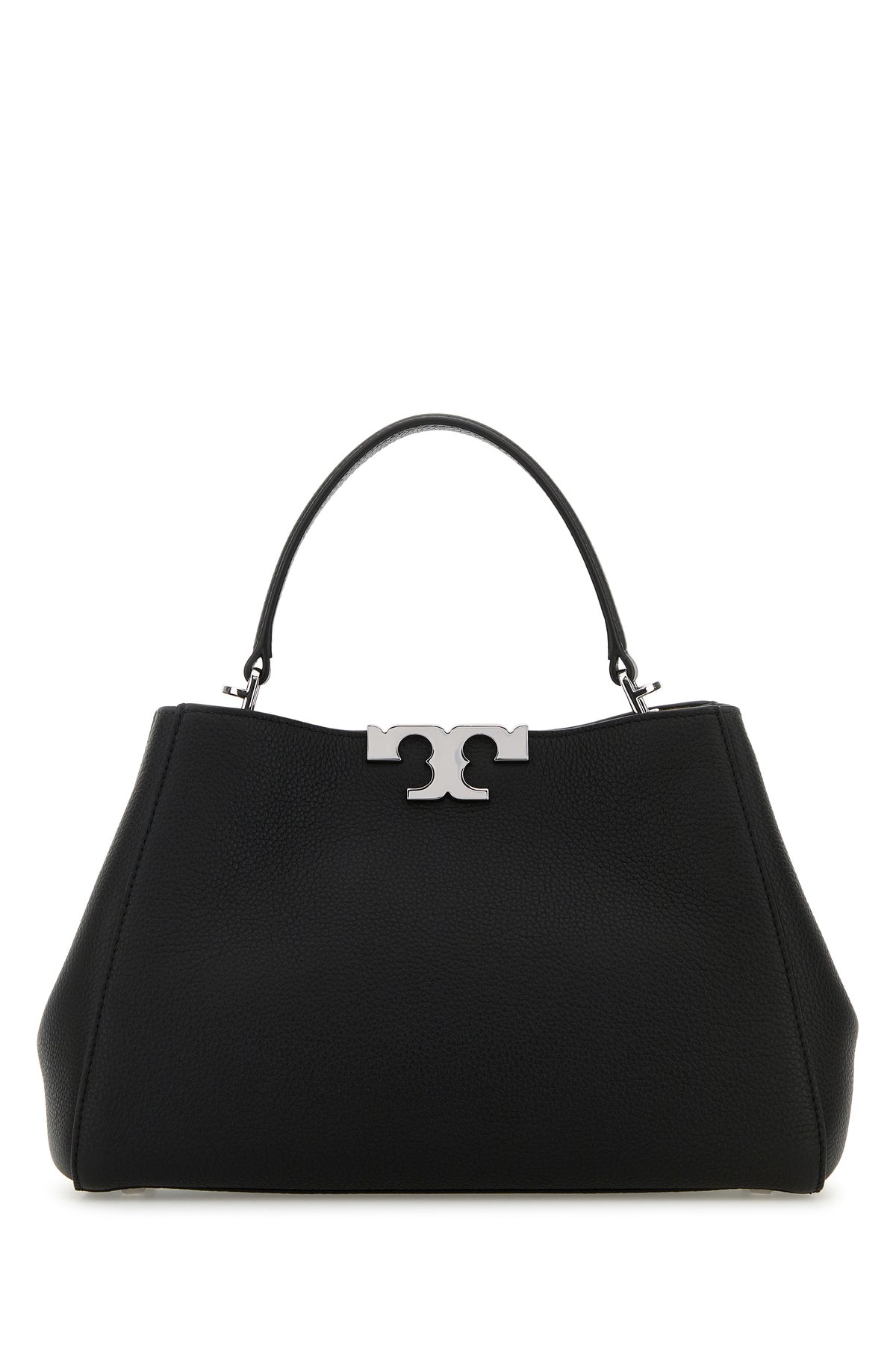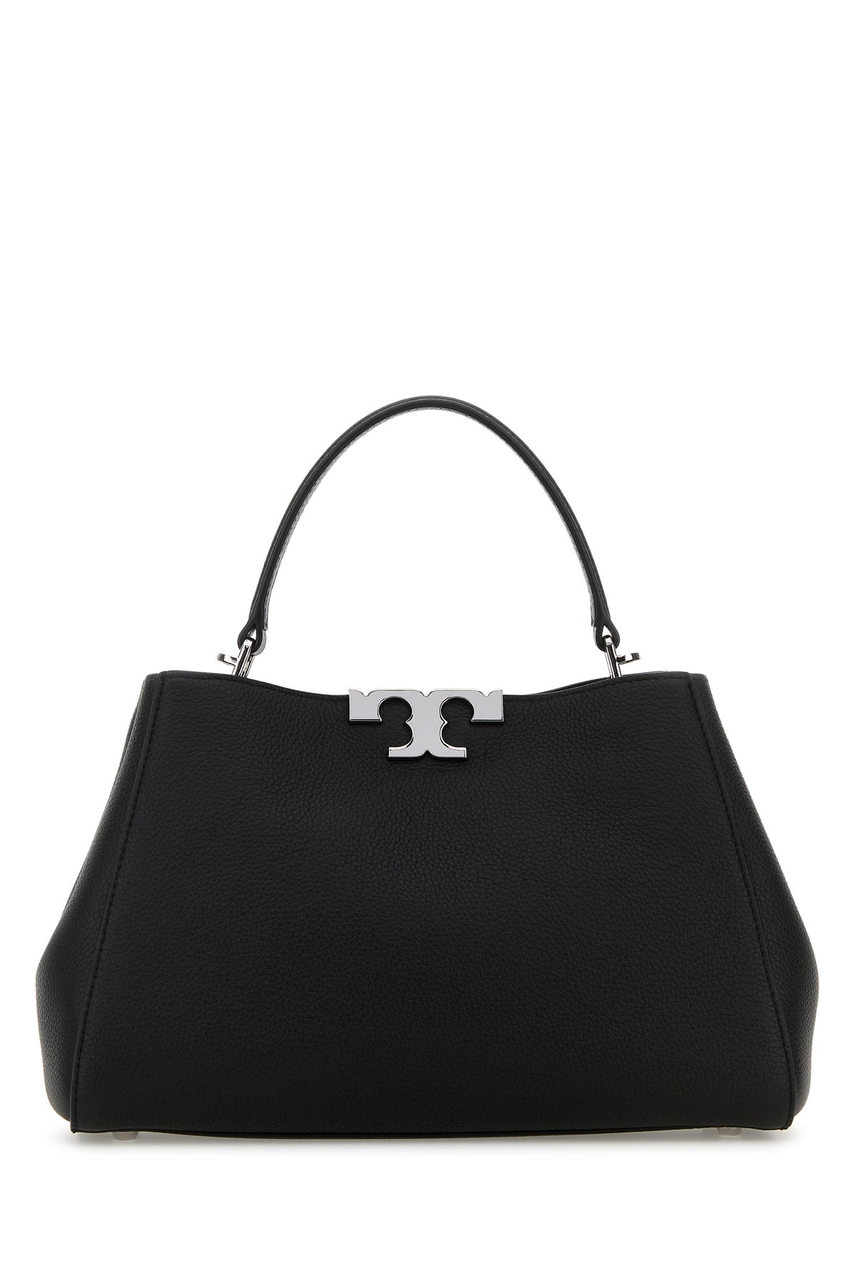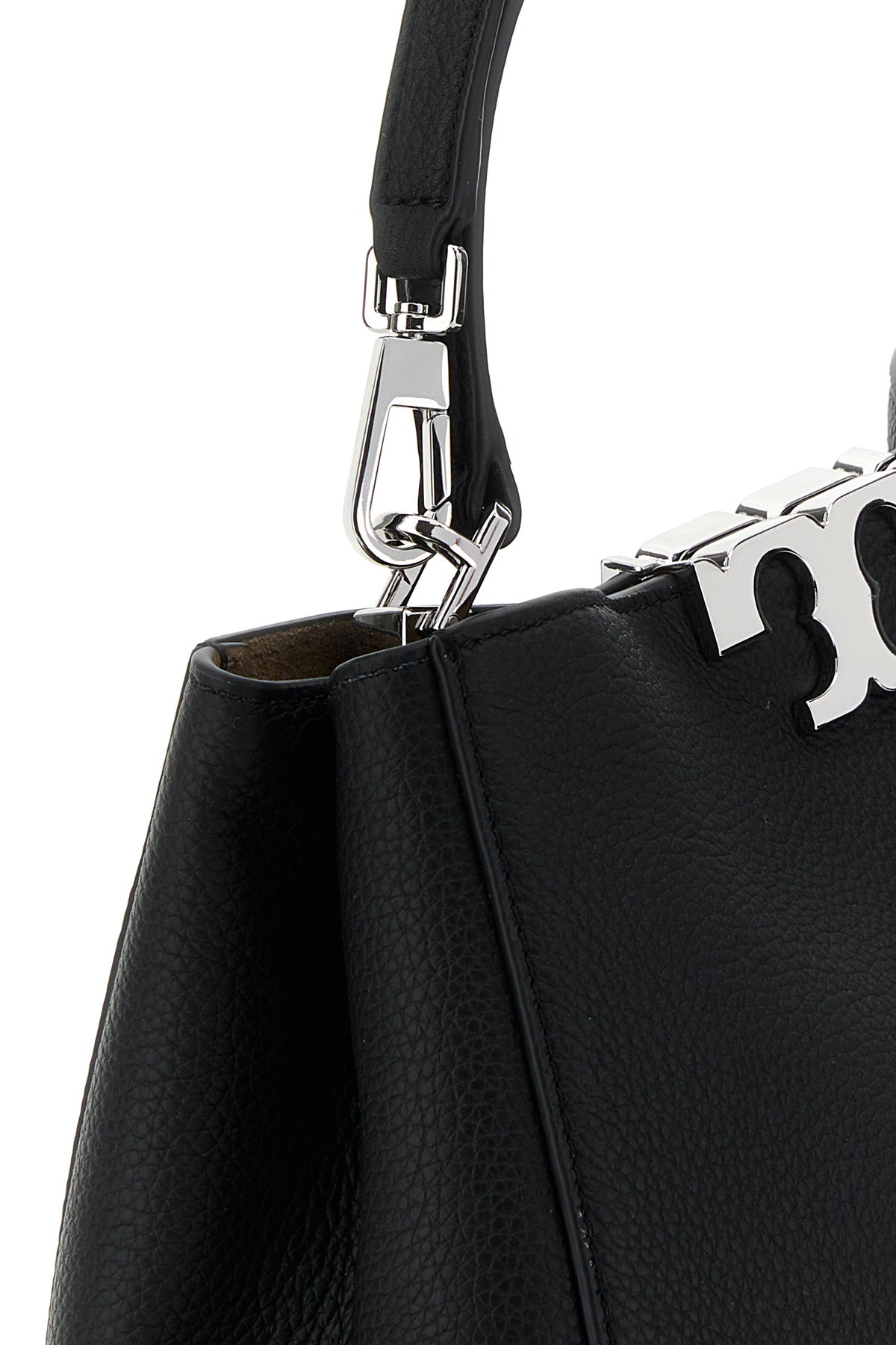 Handbag realized in pebble leather enriched by logoed metal detail at the front and at the back.