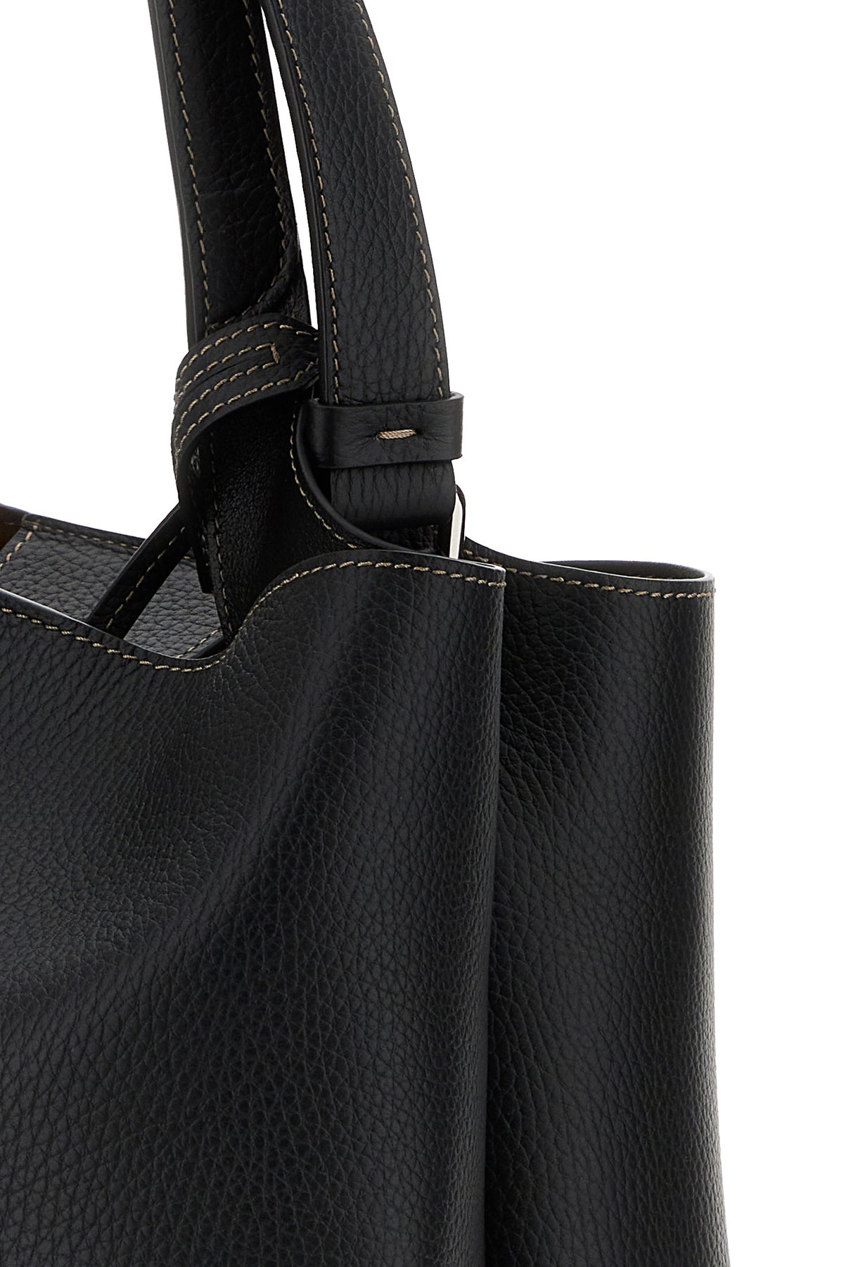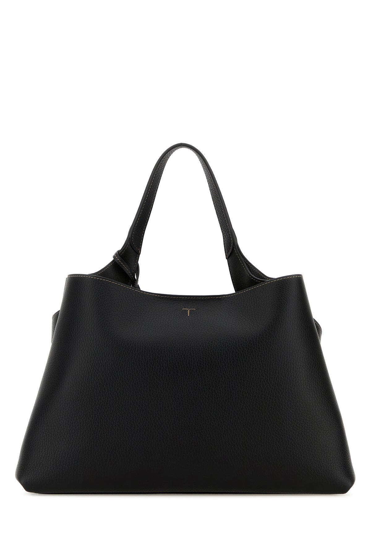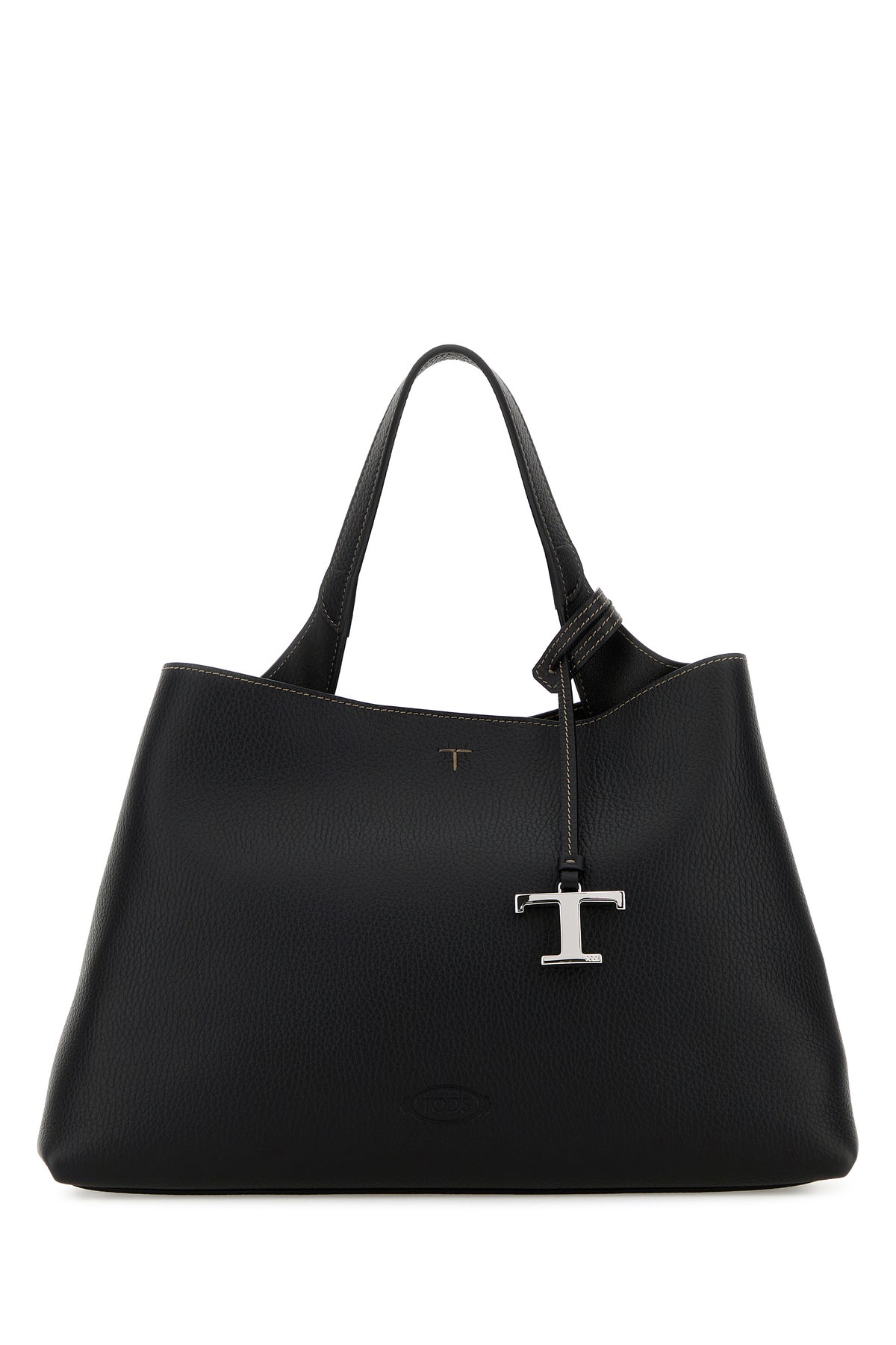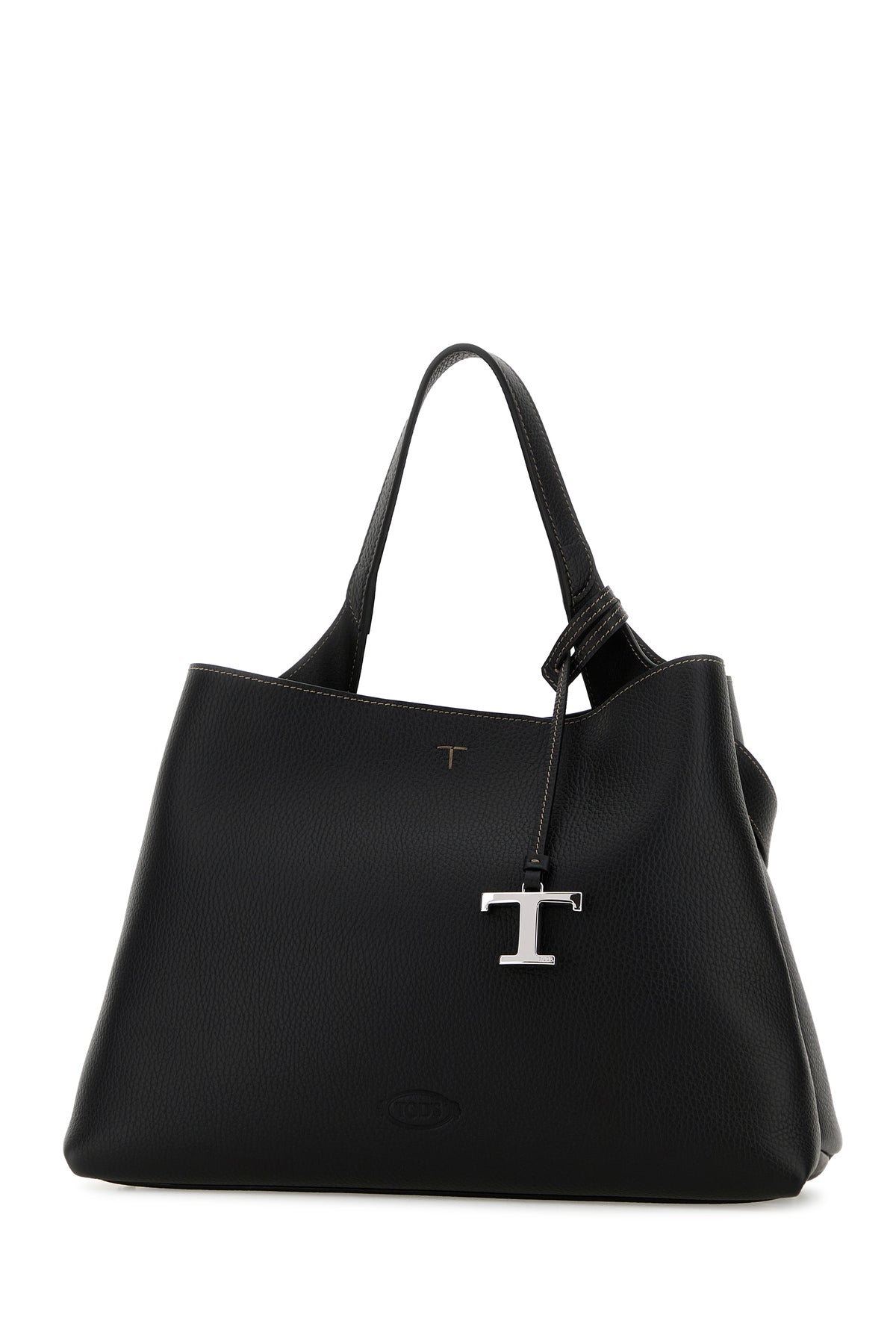 Handbag realized in pebble leather characterized by embossed logo at the front enriched by detachable meta T Timeless accessory.