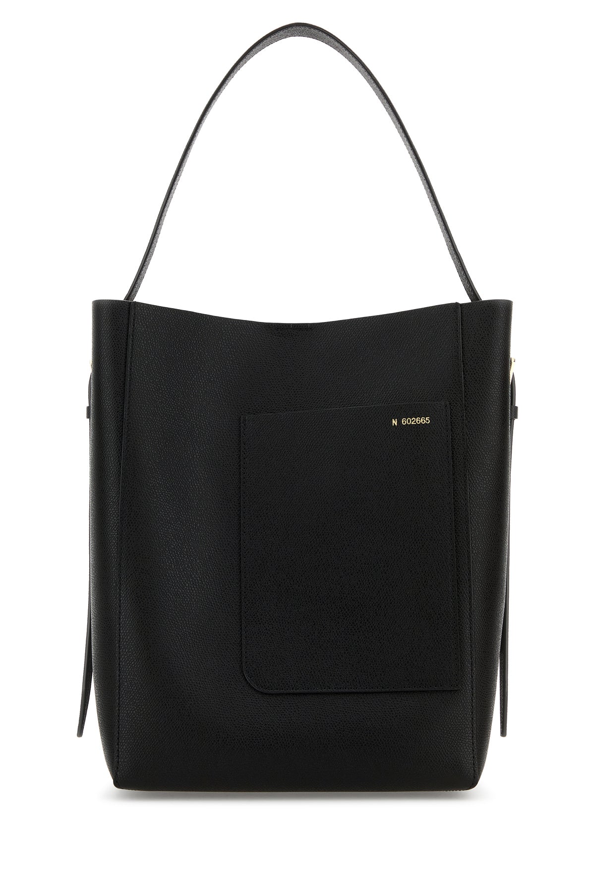 Bucket bag realized in pebble calf leather.