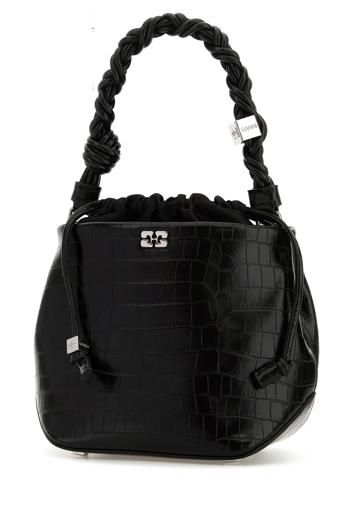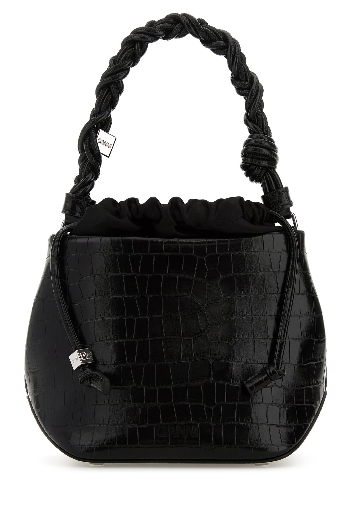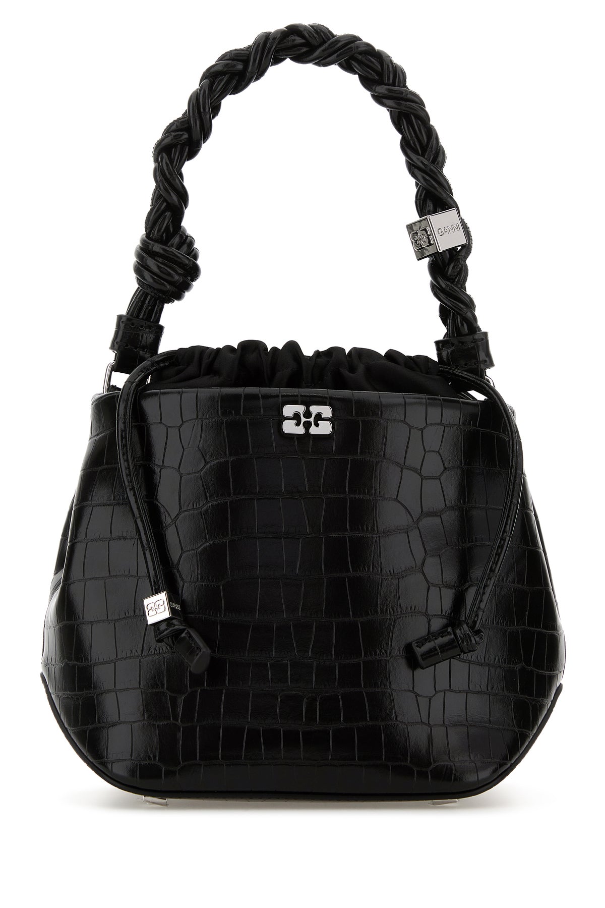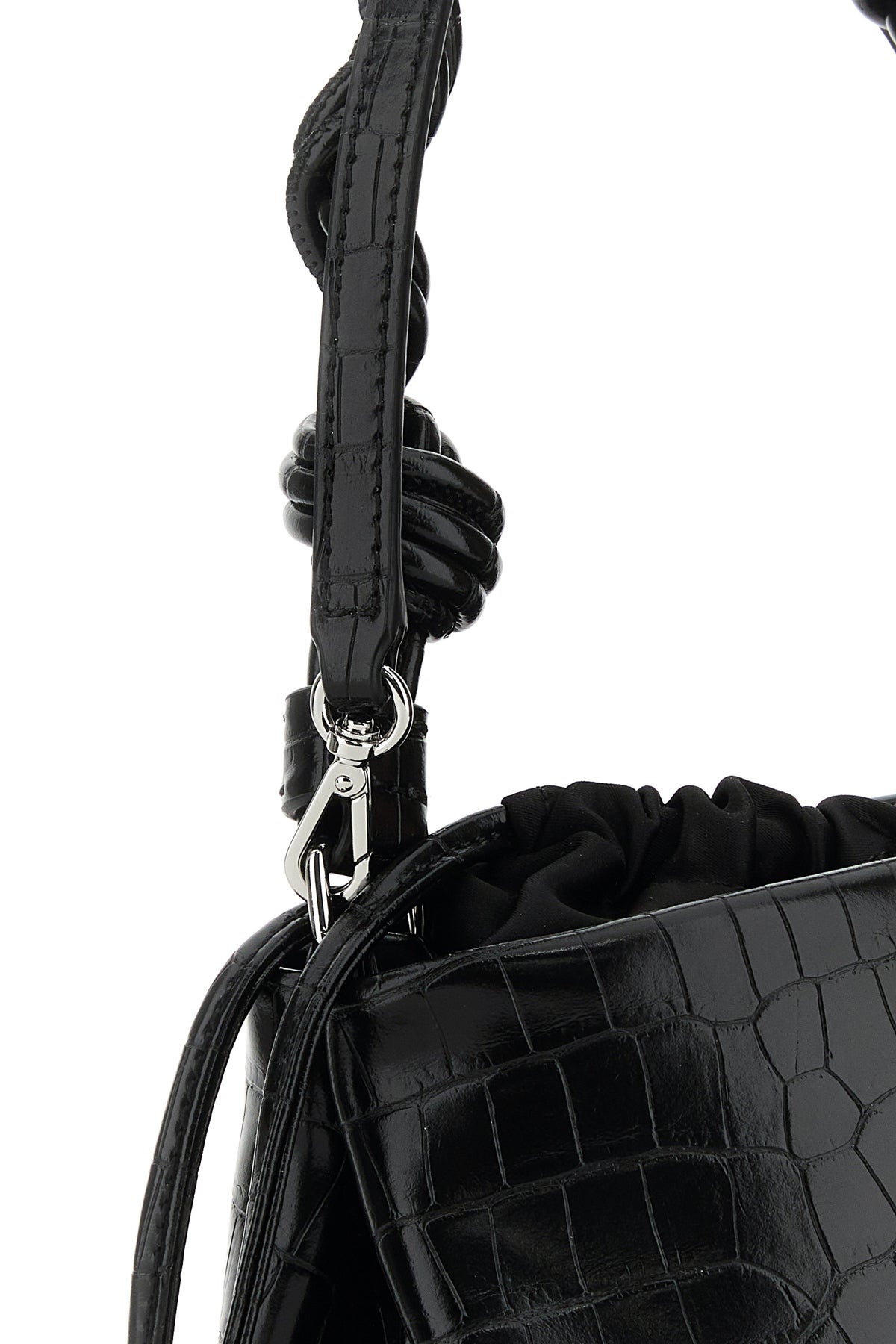 Handbag realized in crocodile embossed motif synthetic leather enriched by logoed metal detail at the front.