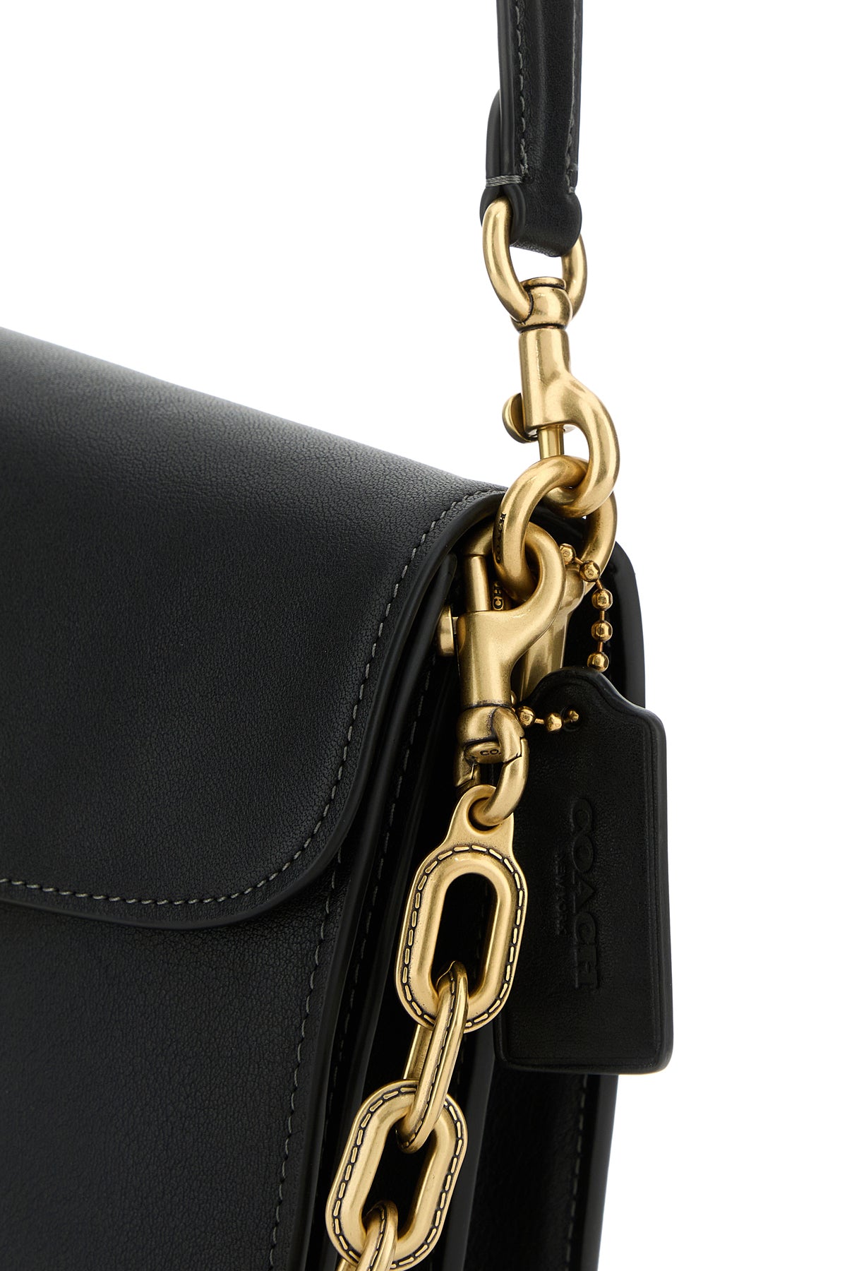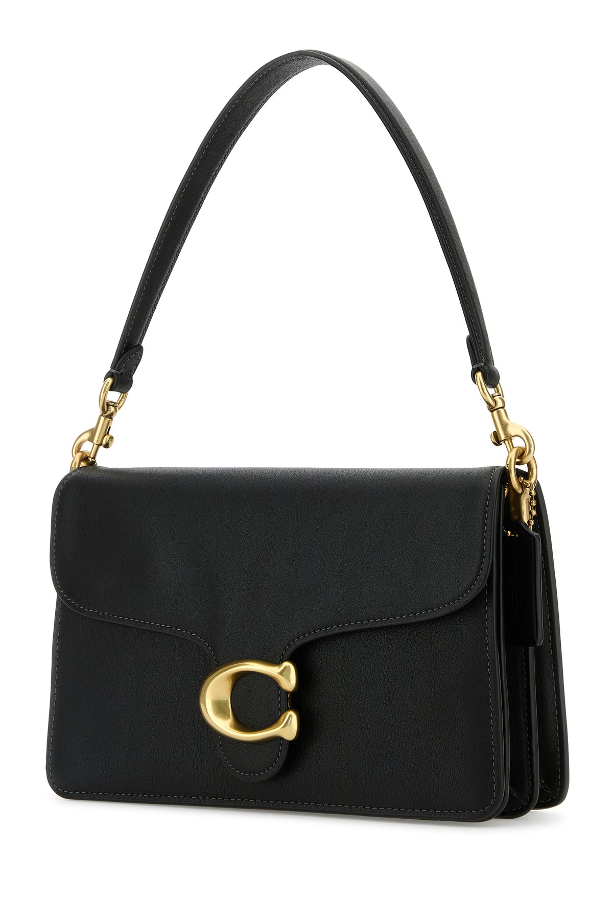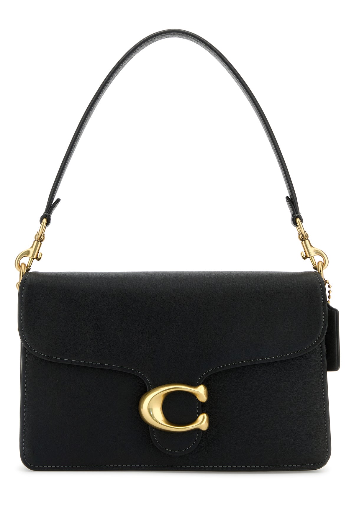 Handbag realized in pebble leather enriched by logoed metal detail at the front.