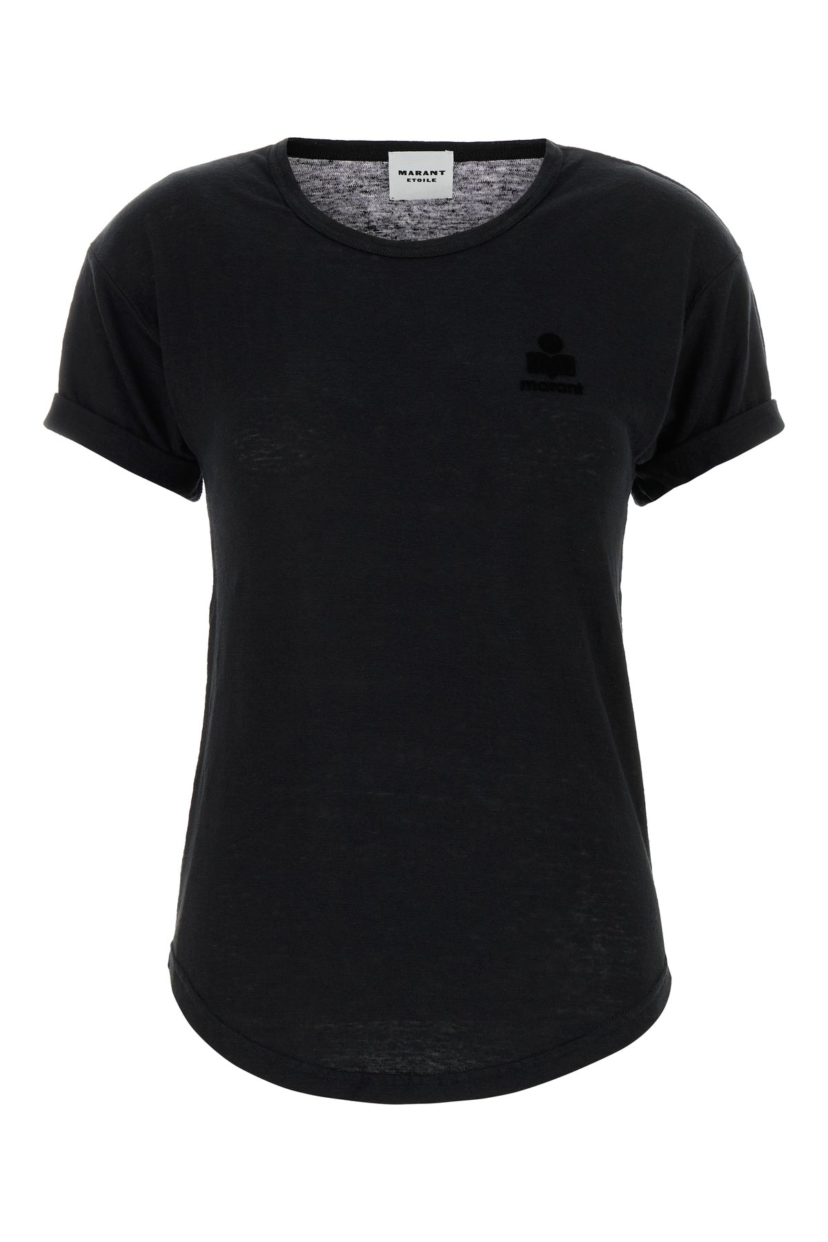 T-shirt realized in pure linen characterized by flocked printed logo on the chest.