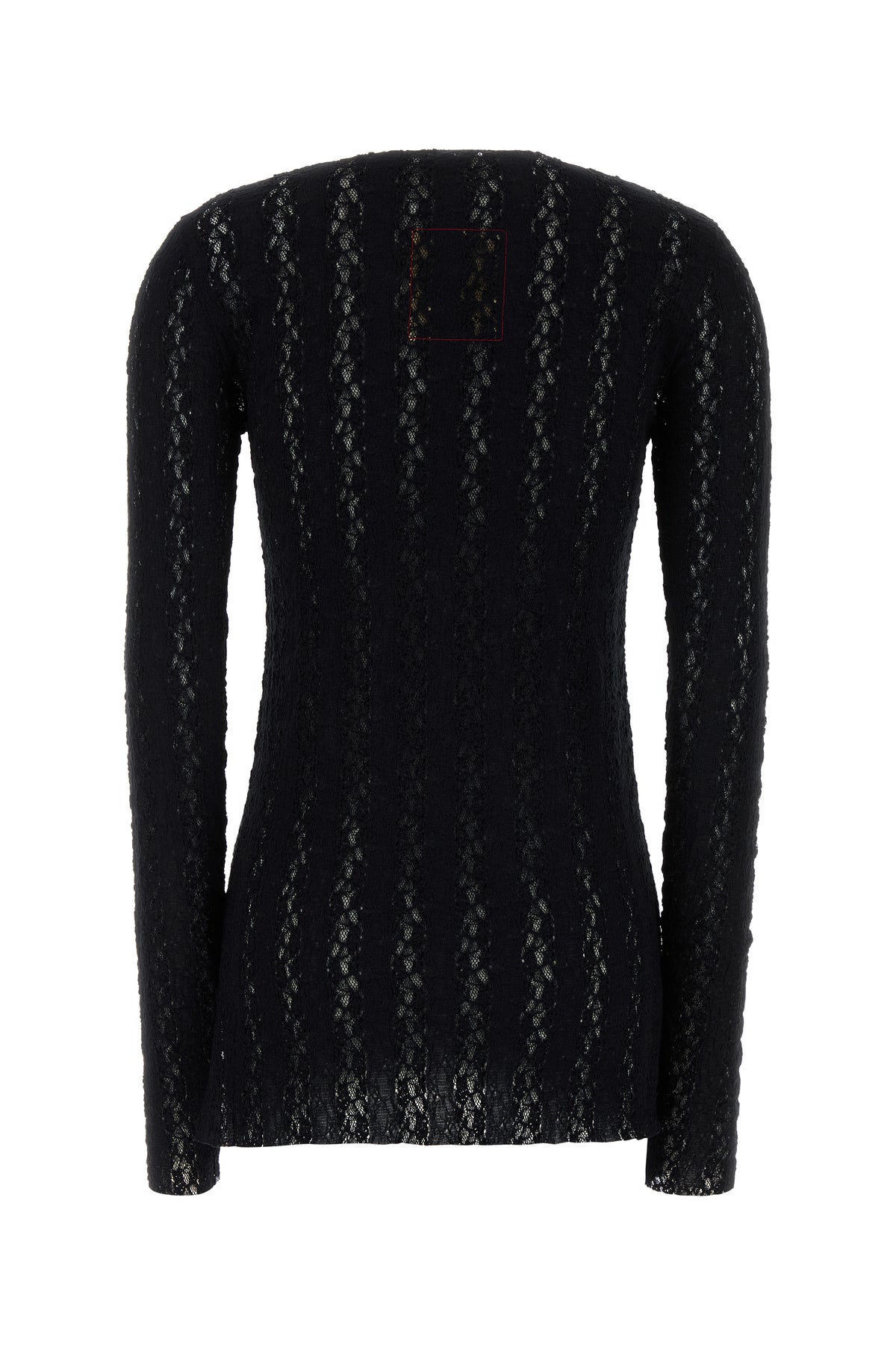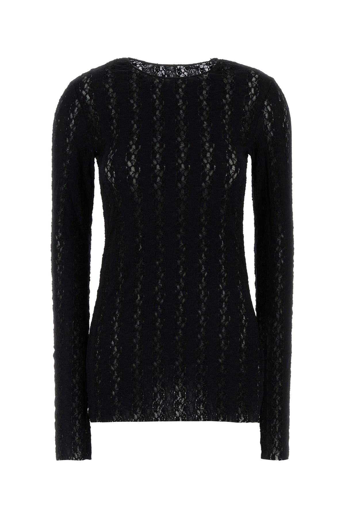 From a see-through effect top realized in stretch nylon characterized by lateral slit on the hemline