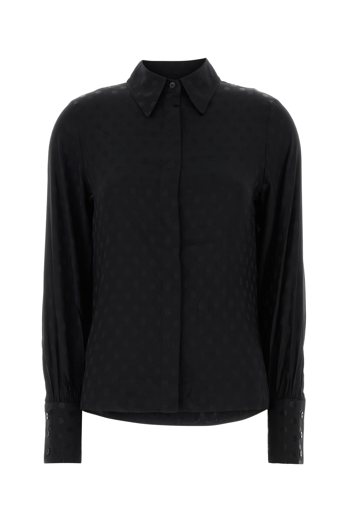 Shirt realized in stretch silk characterized by polka dot motif print on the entire surface.