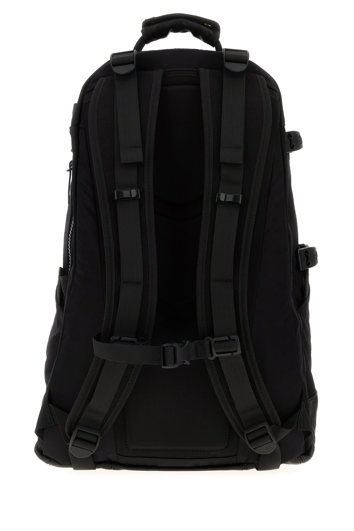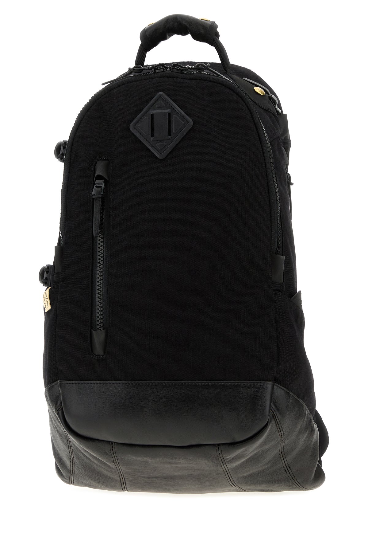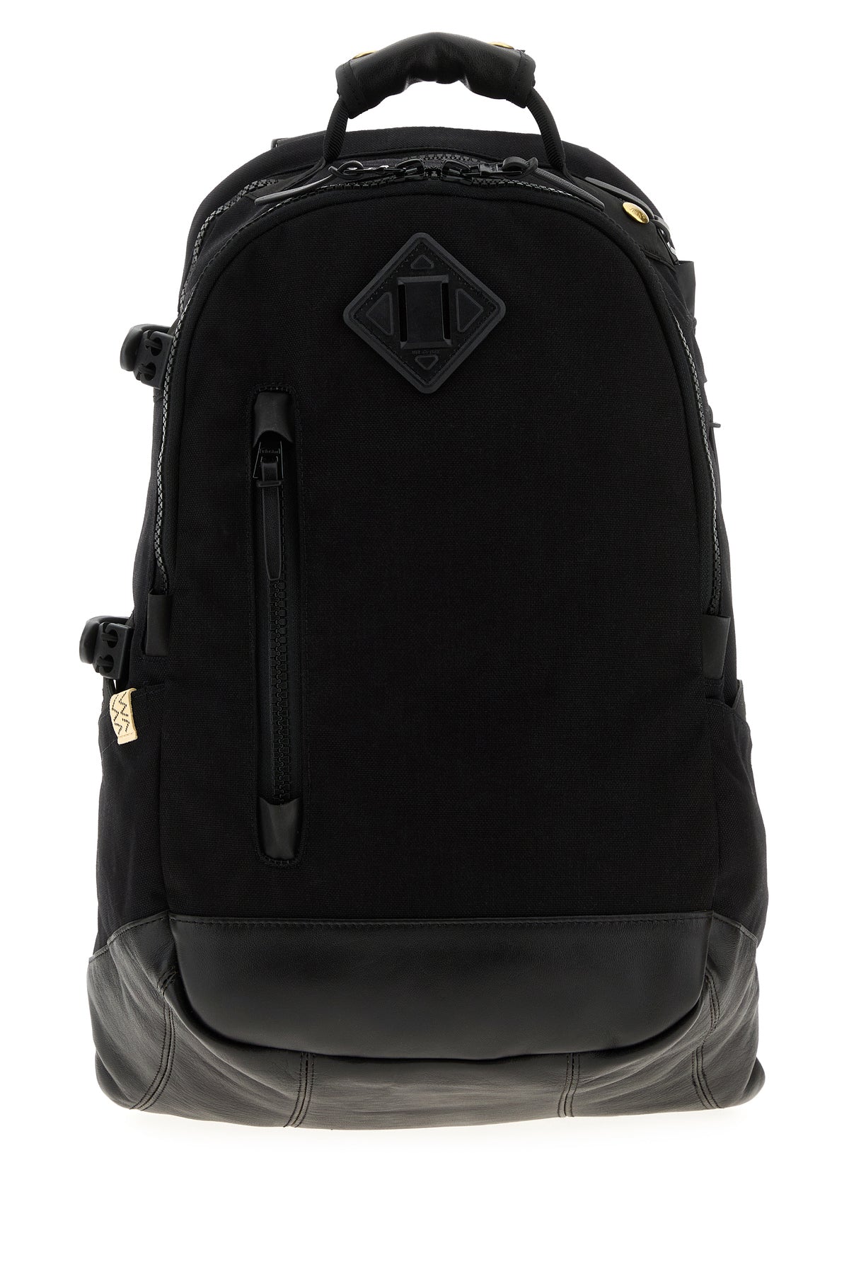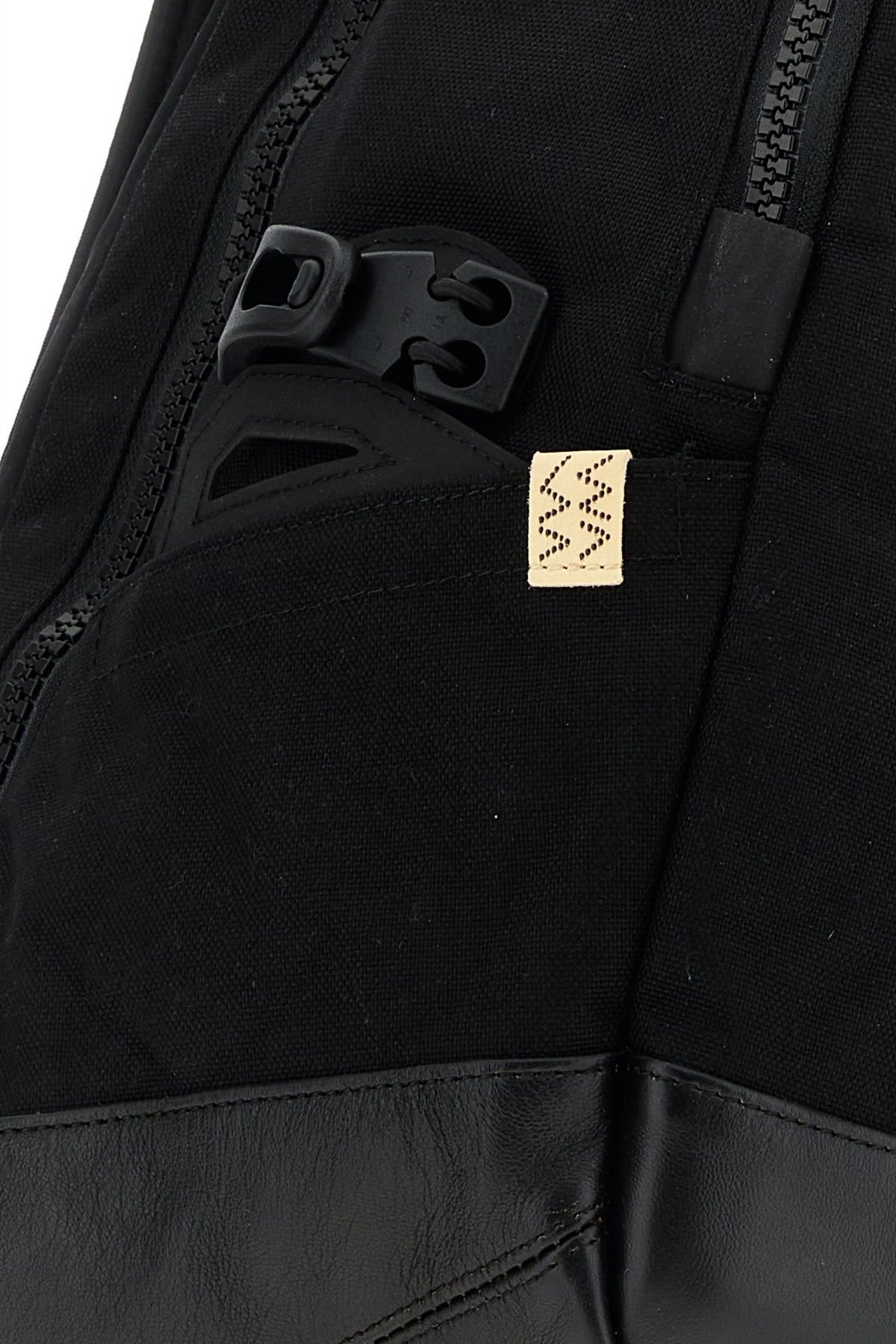 Backpack realized in synthetic leather and canvas enriched by peculiar patch at the front.
