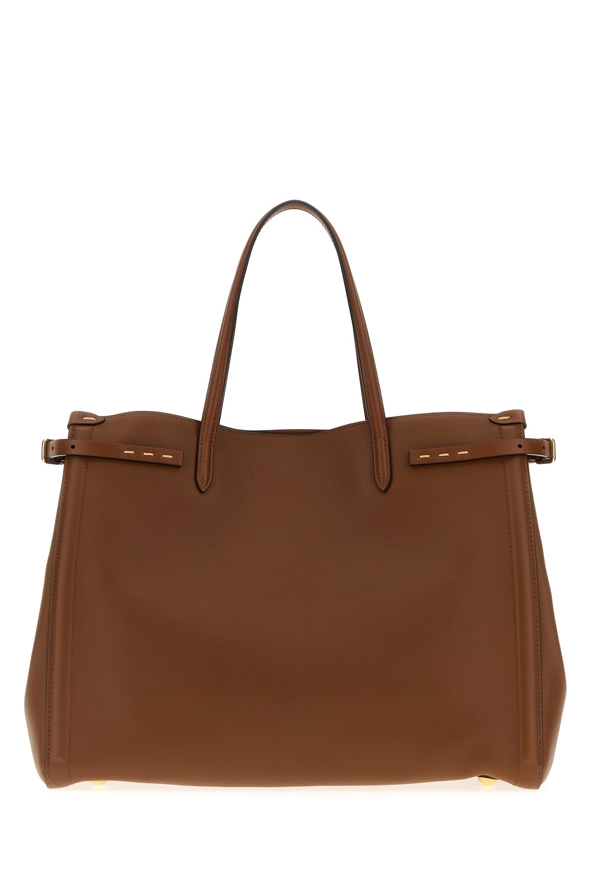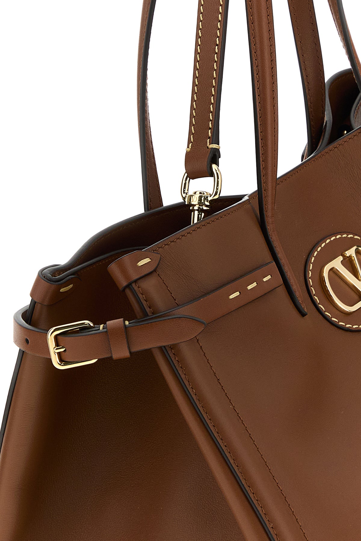 Shopping bag realized in slightly pebble leather enriched by metal VLogo detail at the front.