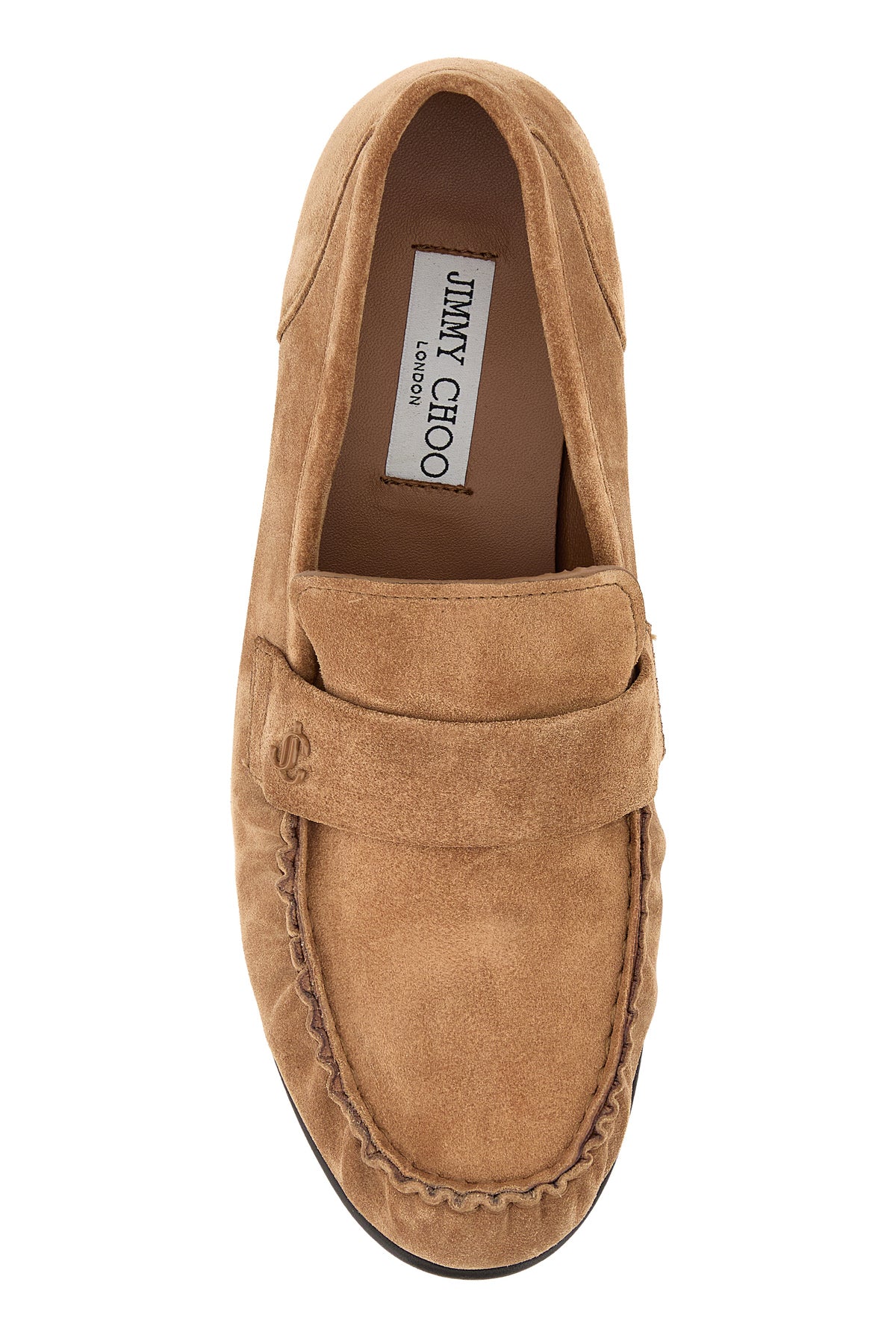 Loafers realized in suede enriched by logoed metal detail on the vamp.