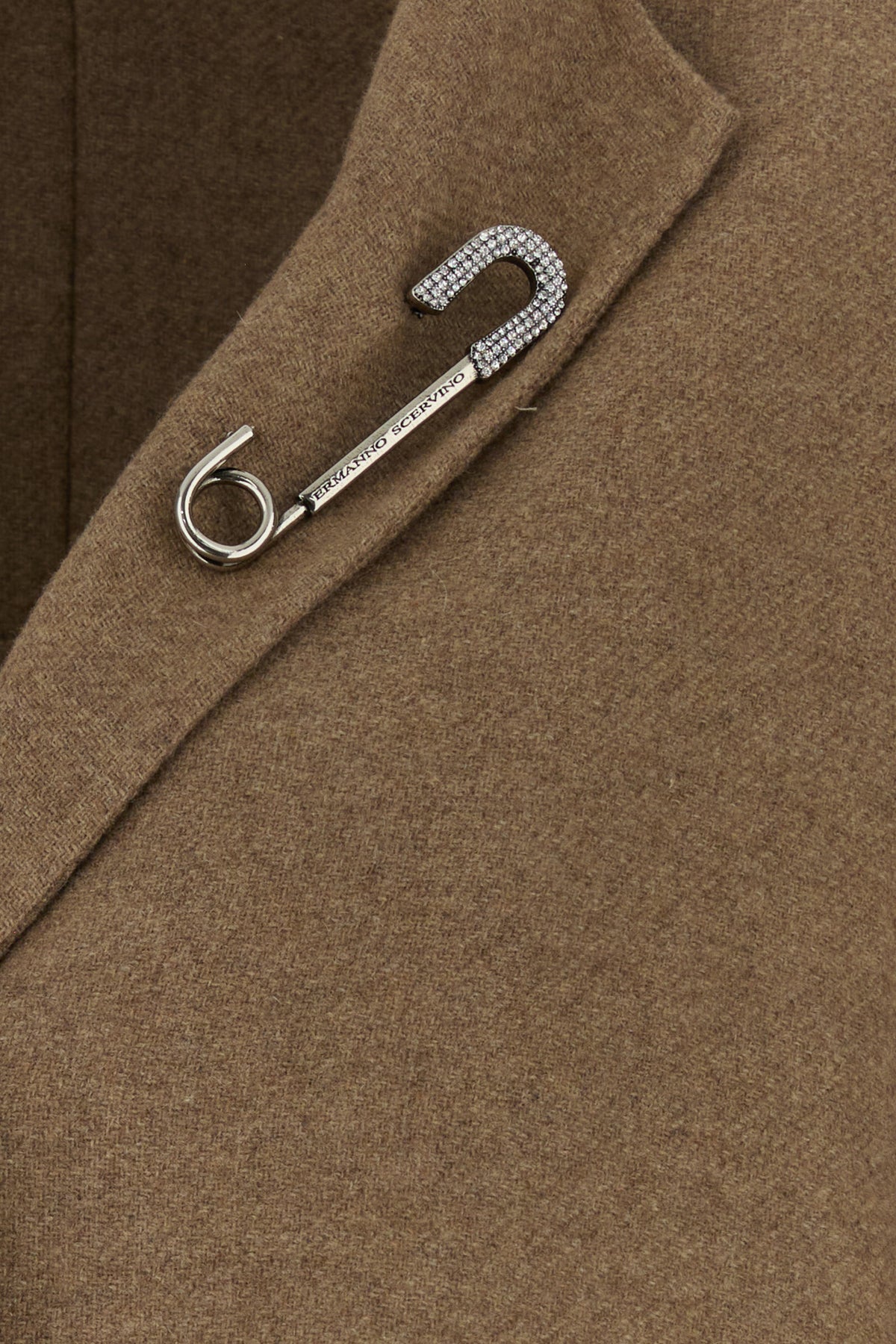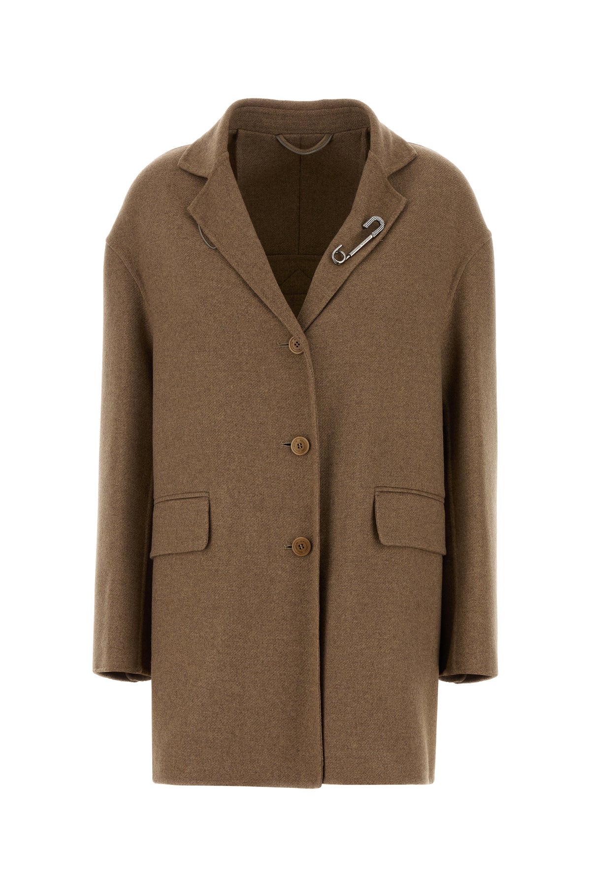 Blazer realized in wool blend enriched by decorative pin on the notch lapels.