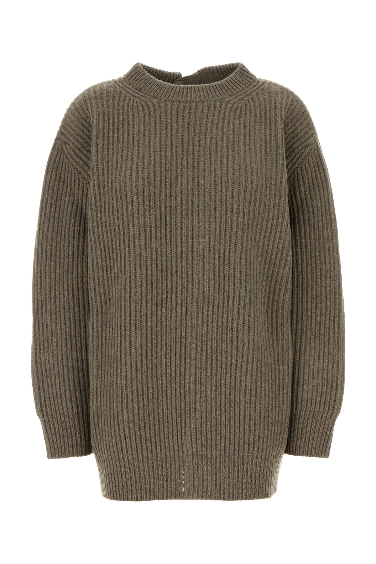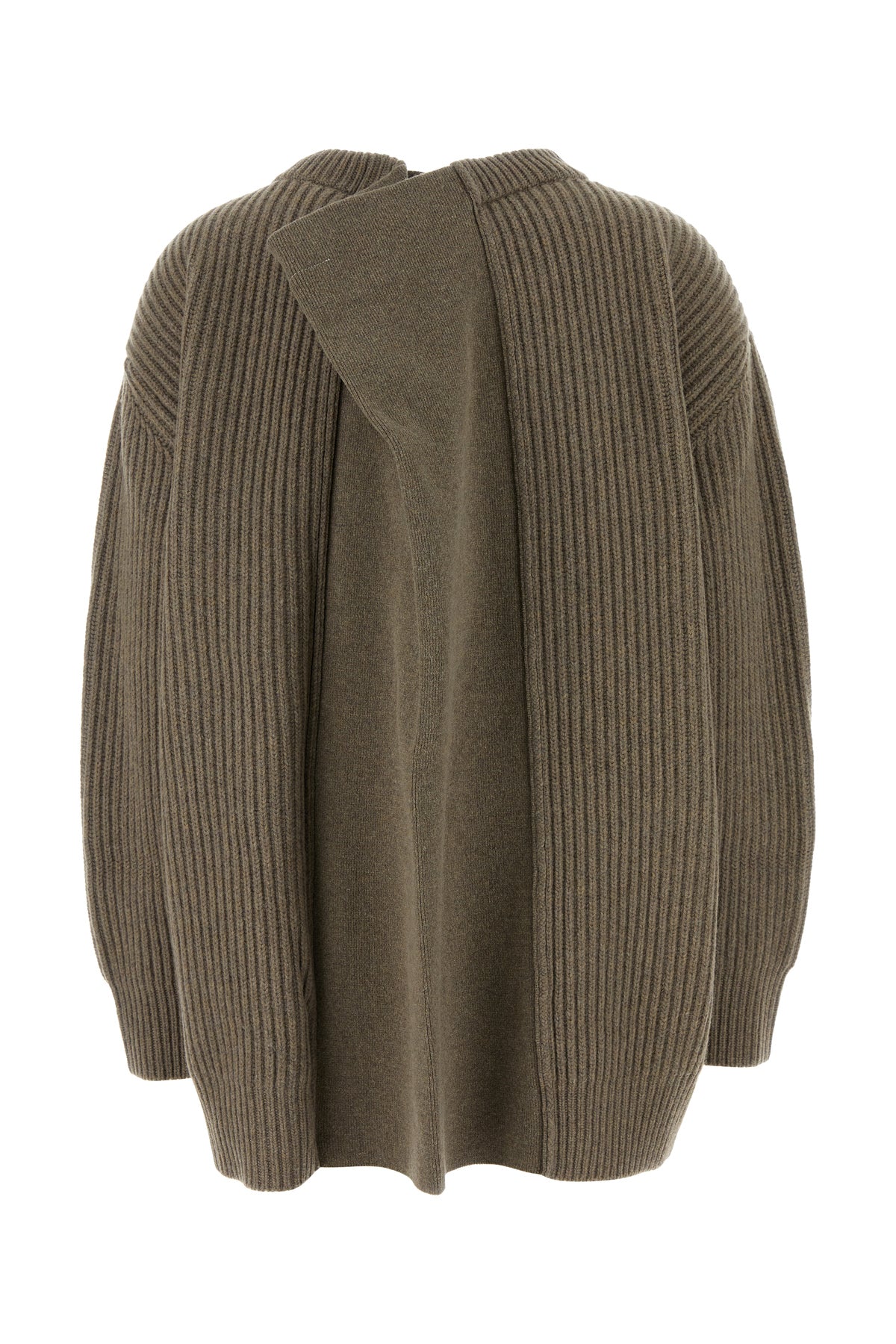 Oversize sweater realized in virgin wool blend characterized by iconic contrasting stitching at the back.