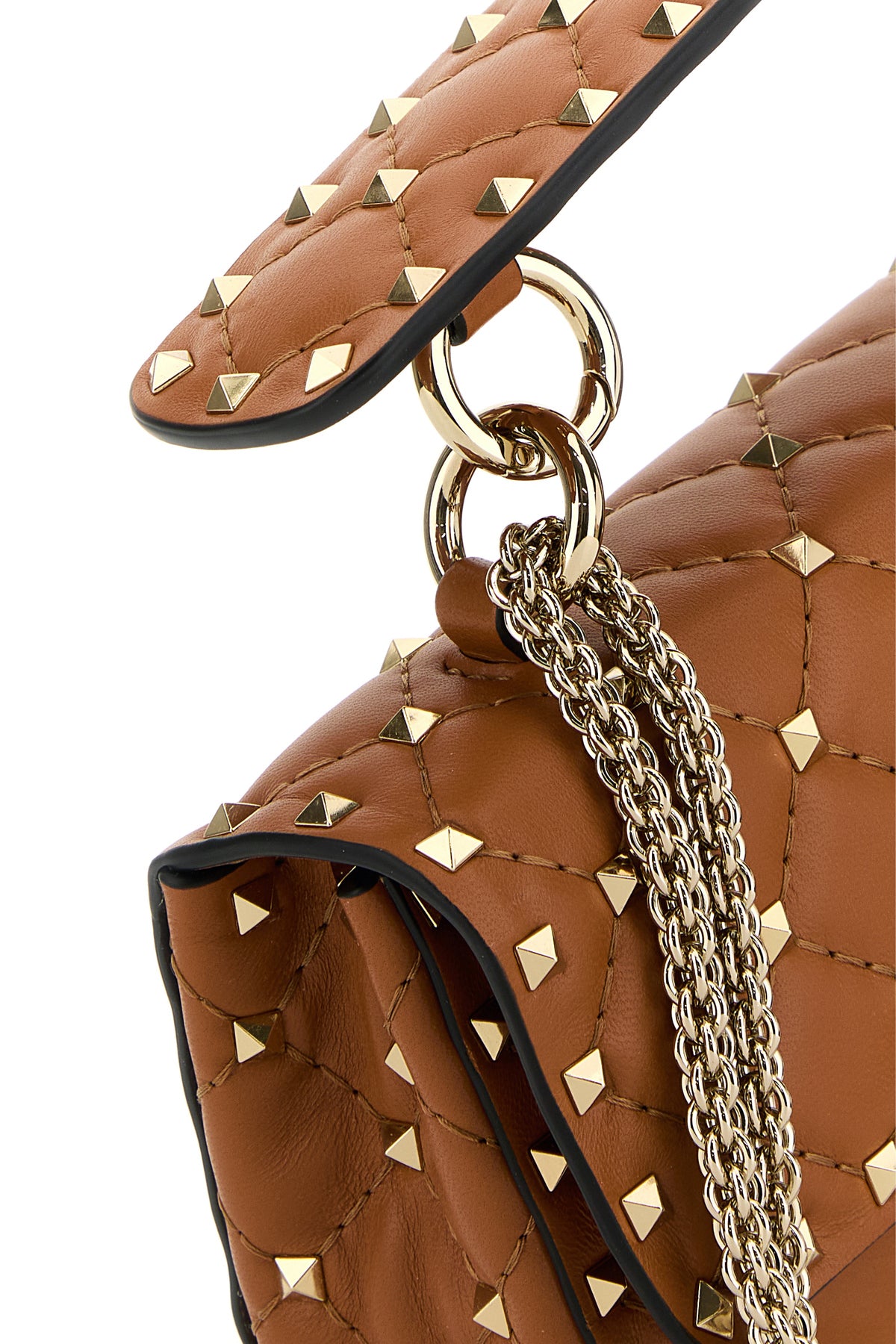 Caramel nappa leather small Rockstud Spike handbag