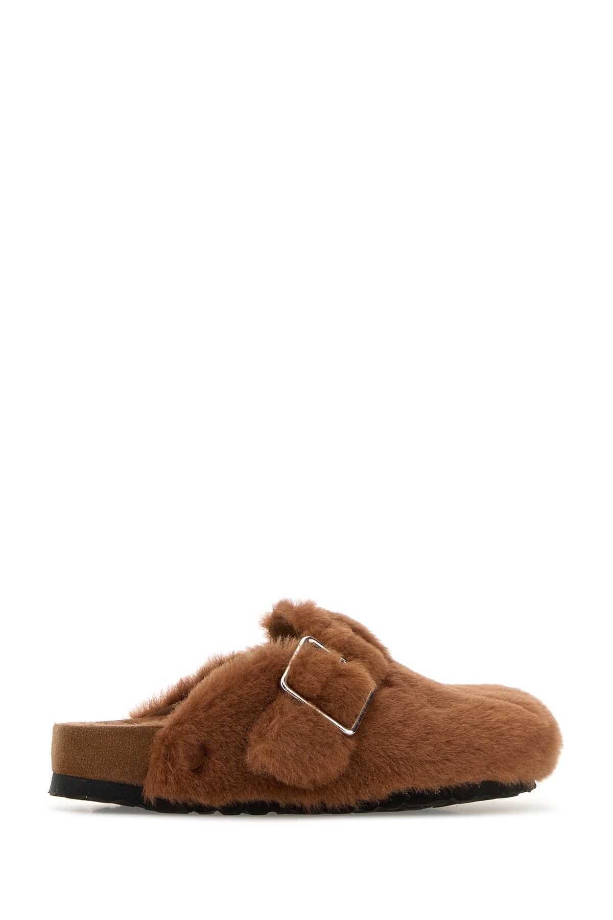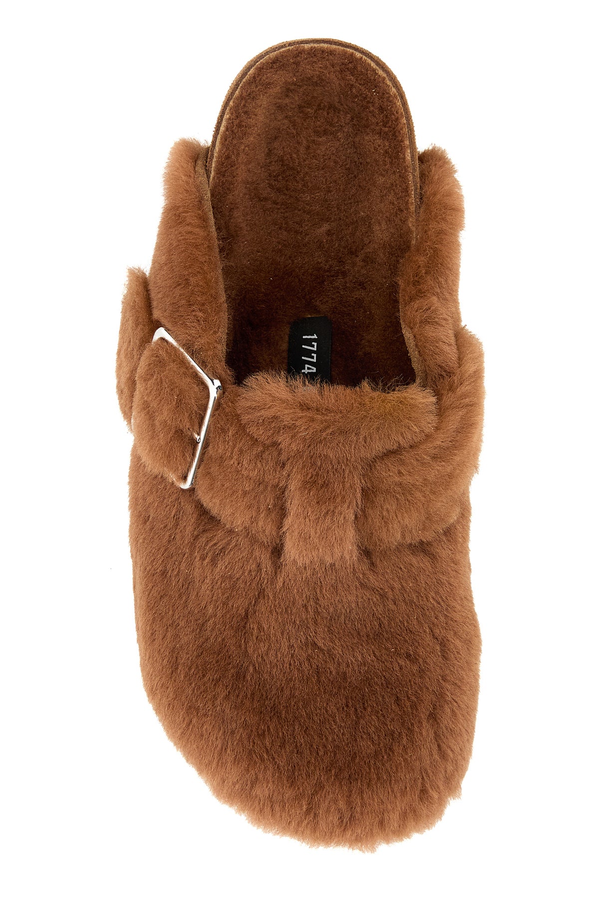 Slippers realized in shearling enriched by logoed metal detail on the side.
