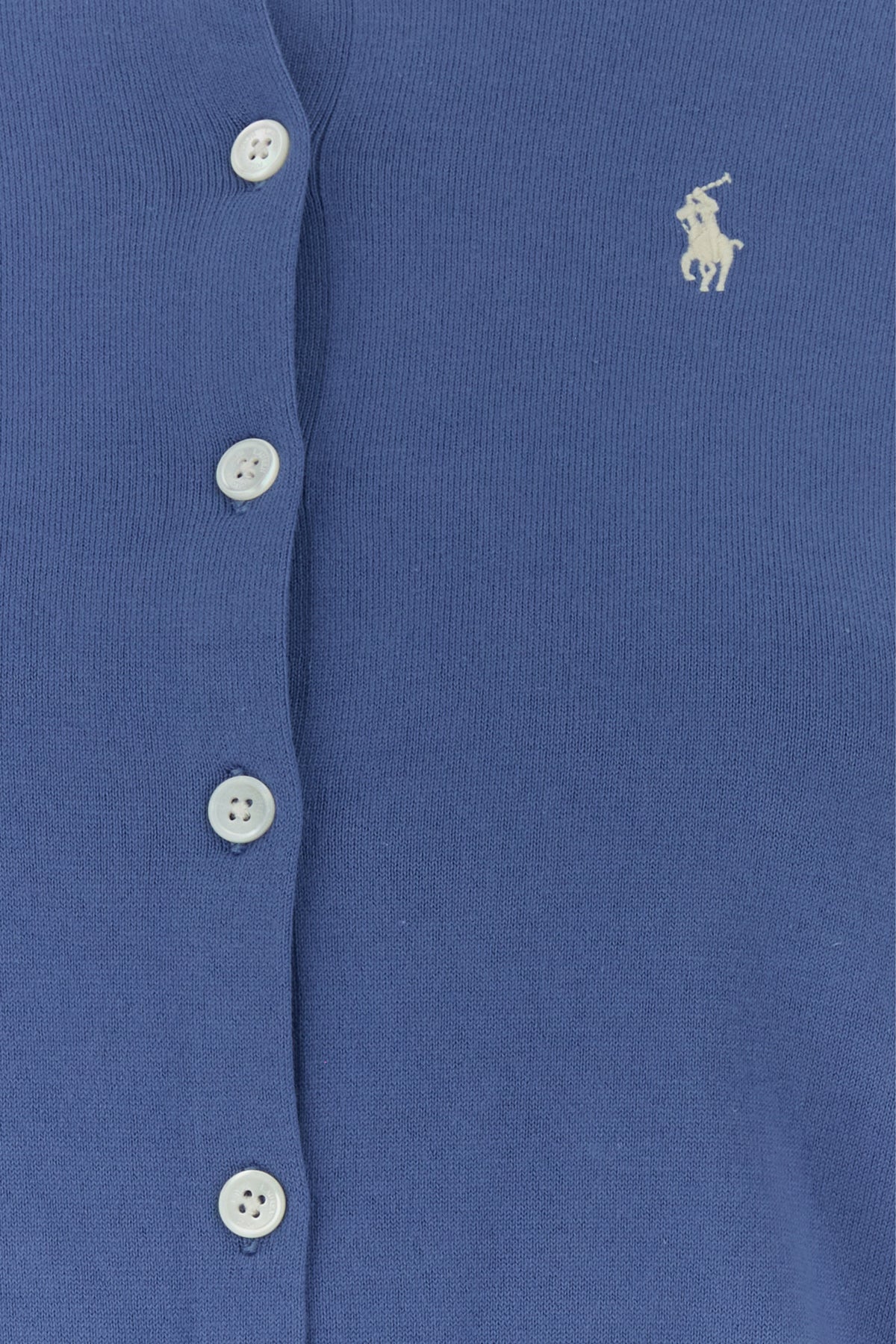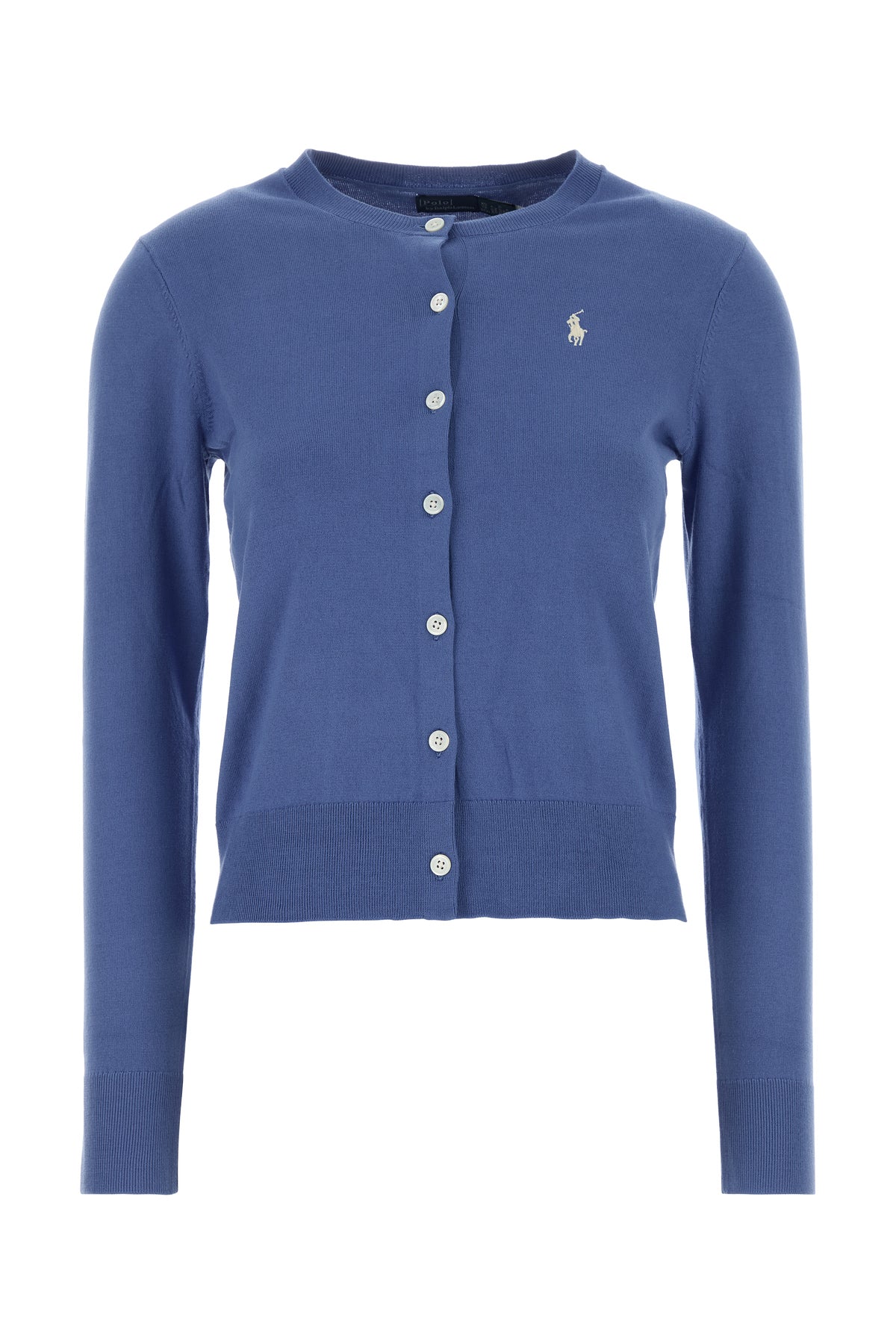 Cardigan realized in stretch cotton blend characterized by iconic embroidered logo on the chest.