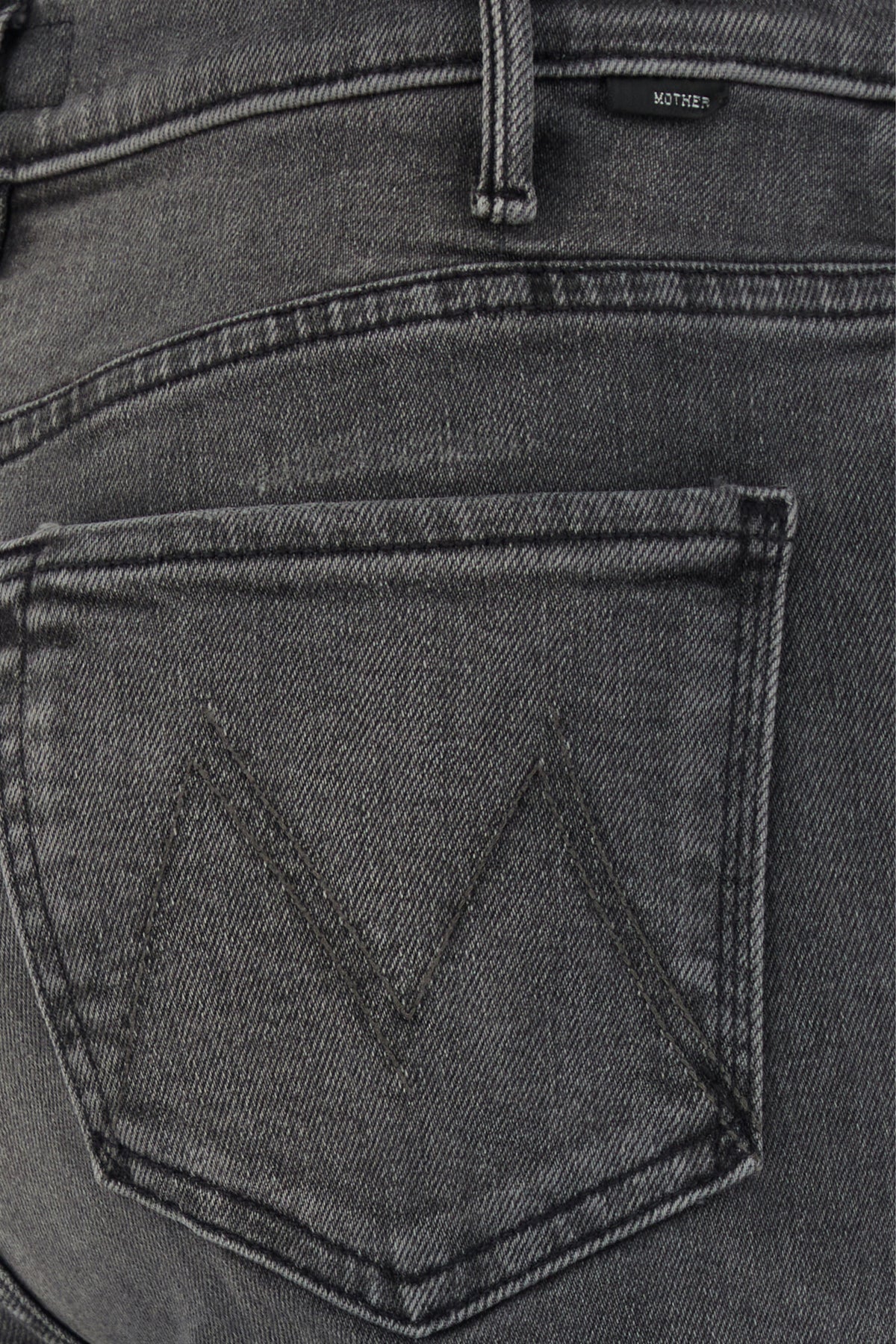 Jeans realized in stonewashed stretch and slightly distressed denim characterized by central ironed pleats.