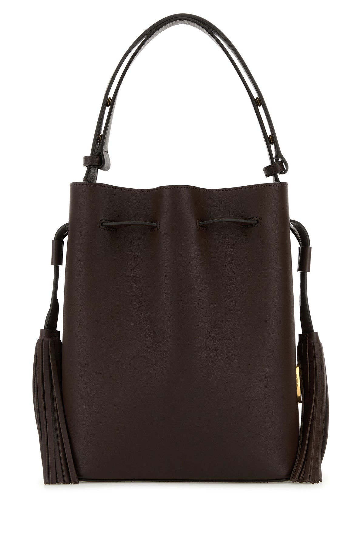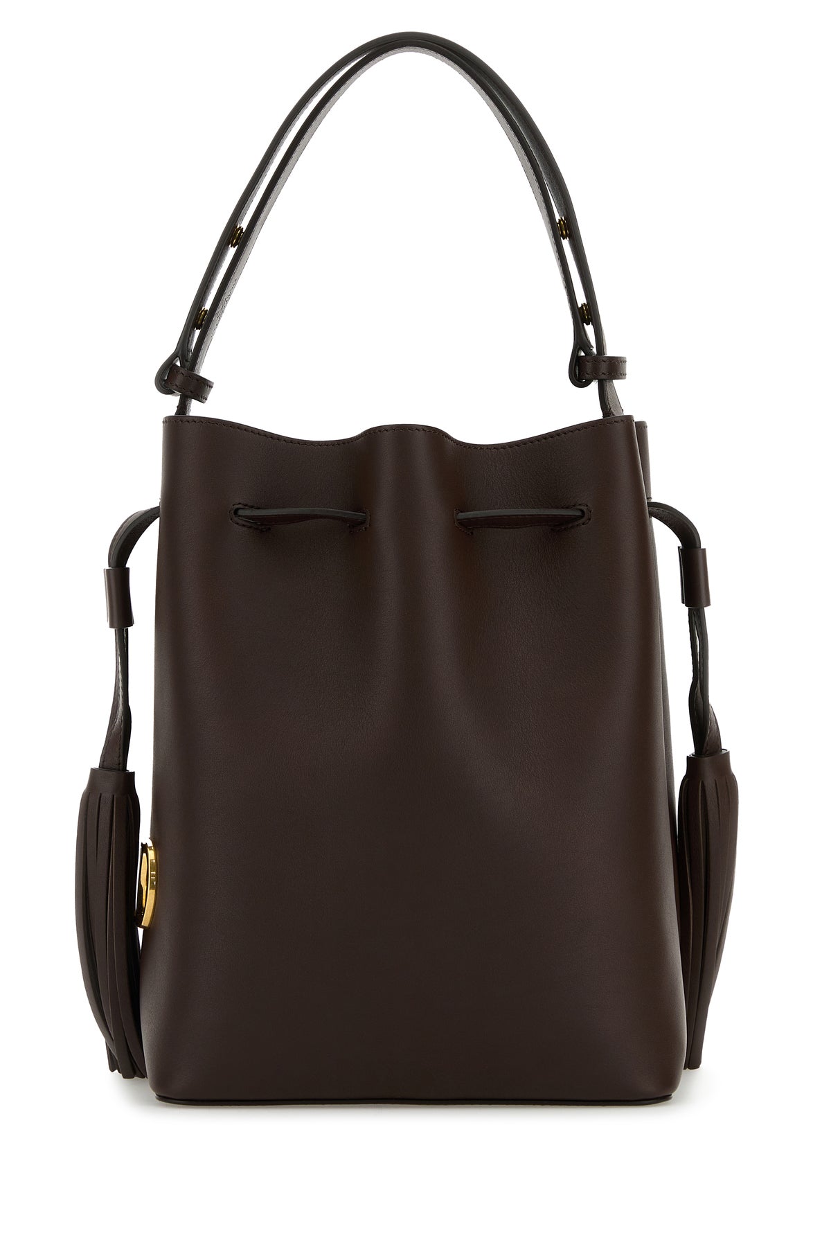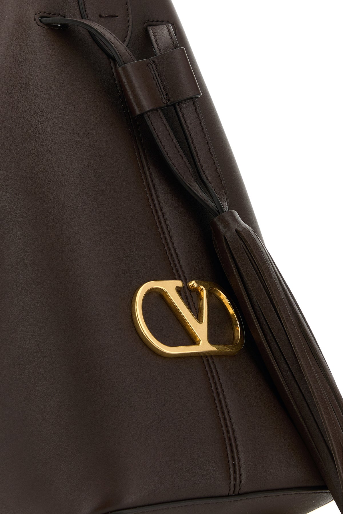 Bucket bag realized in pebble leather enriched by VLogo Signature metal detail on the side.