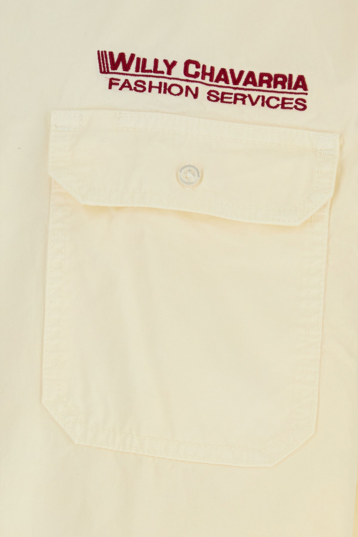 Oversize shirt realized in pure cotton characterized by contrasting embroidered logo on the chest.