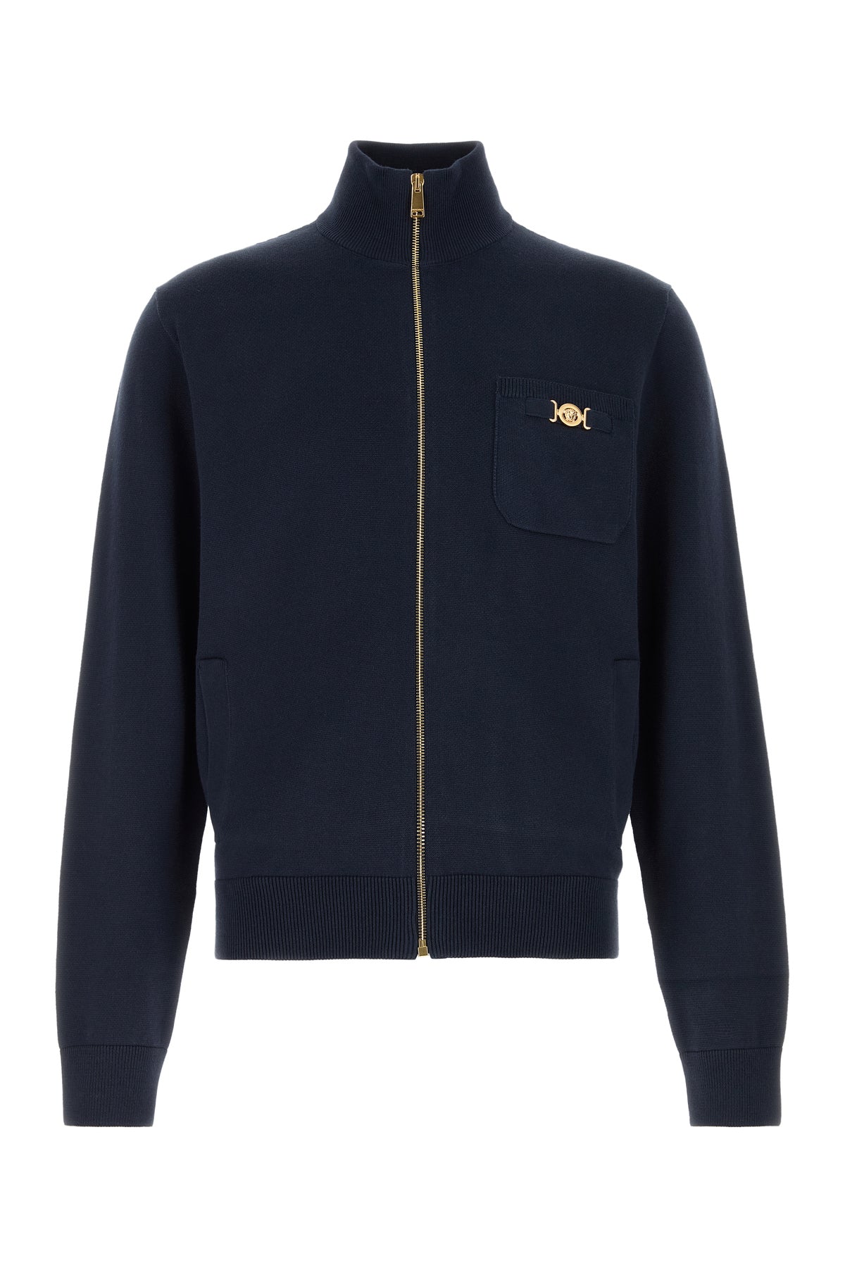 Cardigan realized in cotton blend enriched by Medusa meta detail on the chest.