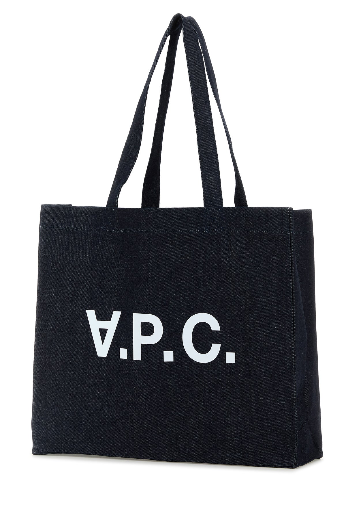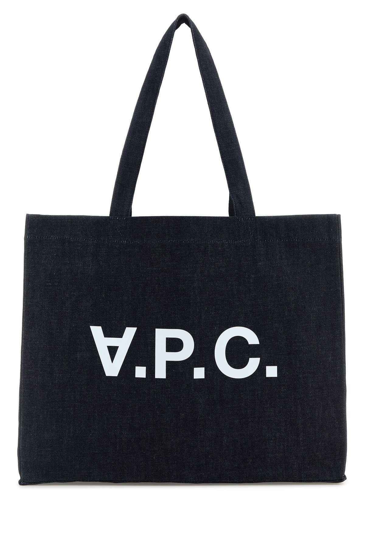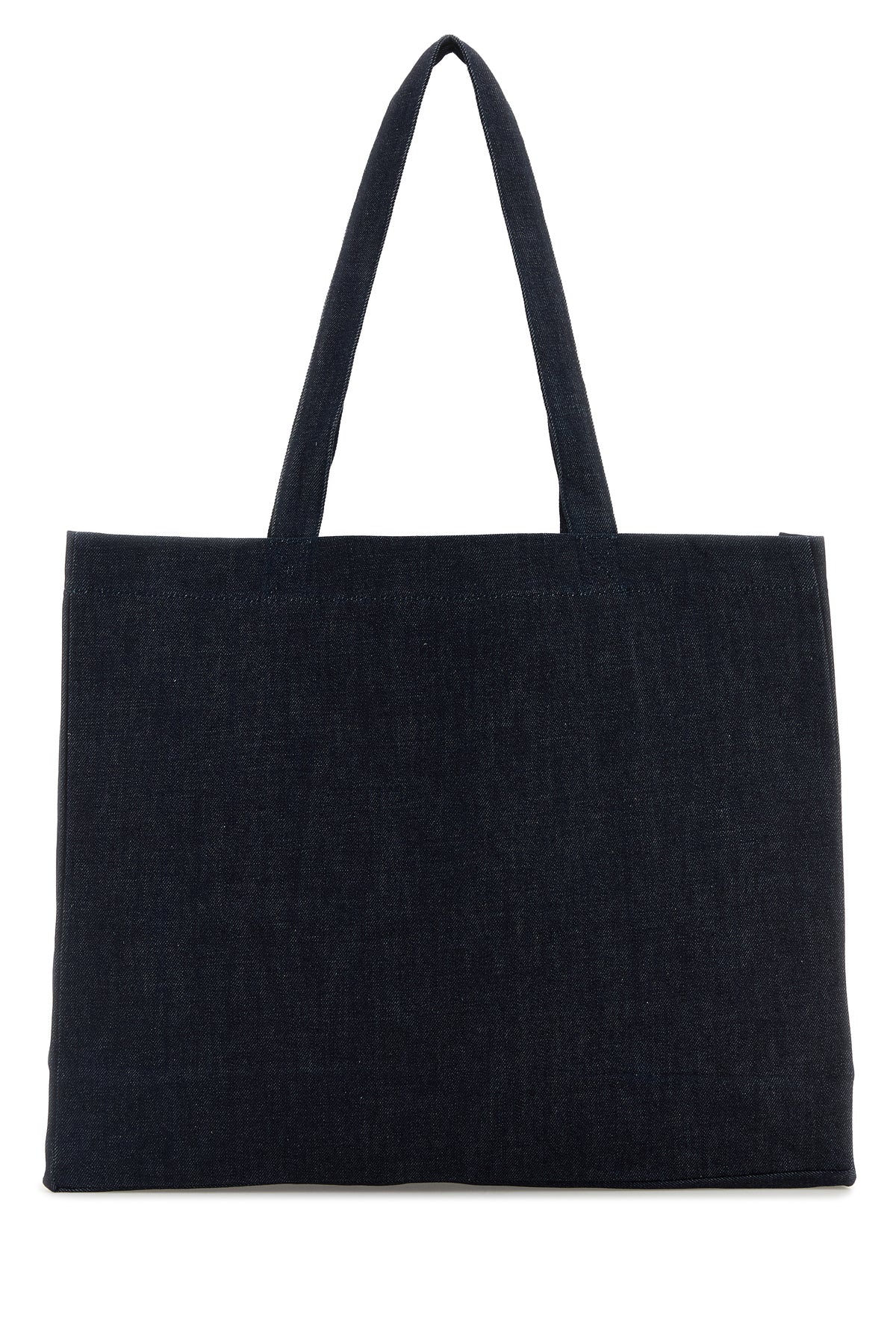 Shopping bag realized in pure cotton denim characterized by contrasting printed logo at the front.