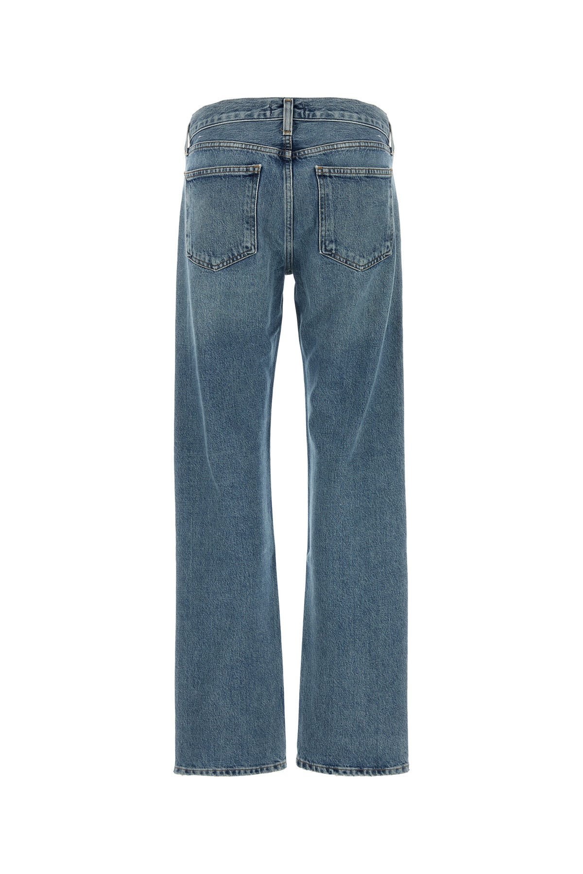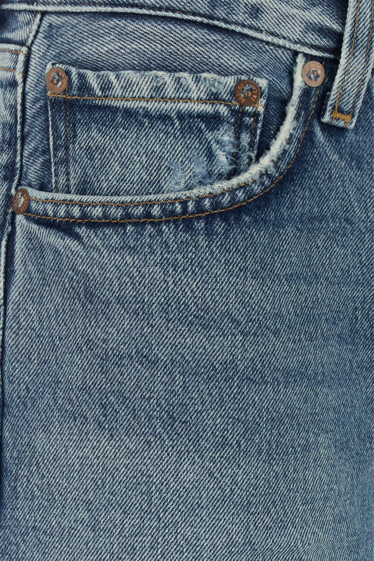 Jeans realized in stonewashed and slightly distressed pure cotton denim.